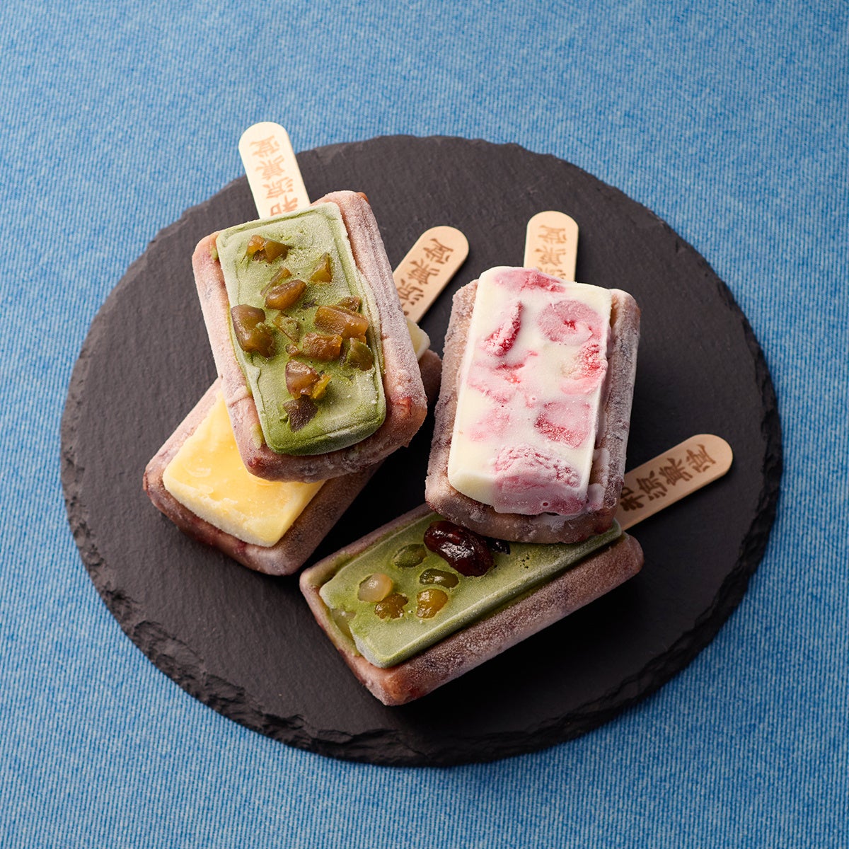涼菓バー4種ともち涼菓2種を詰め合わせた限定セット。あずきバー発売50周年限定保冷バッグに入れた特別セットです。