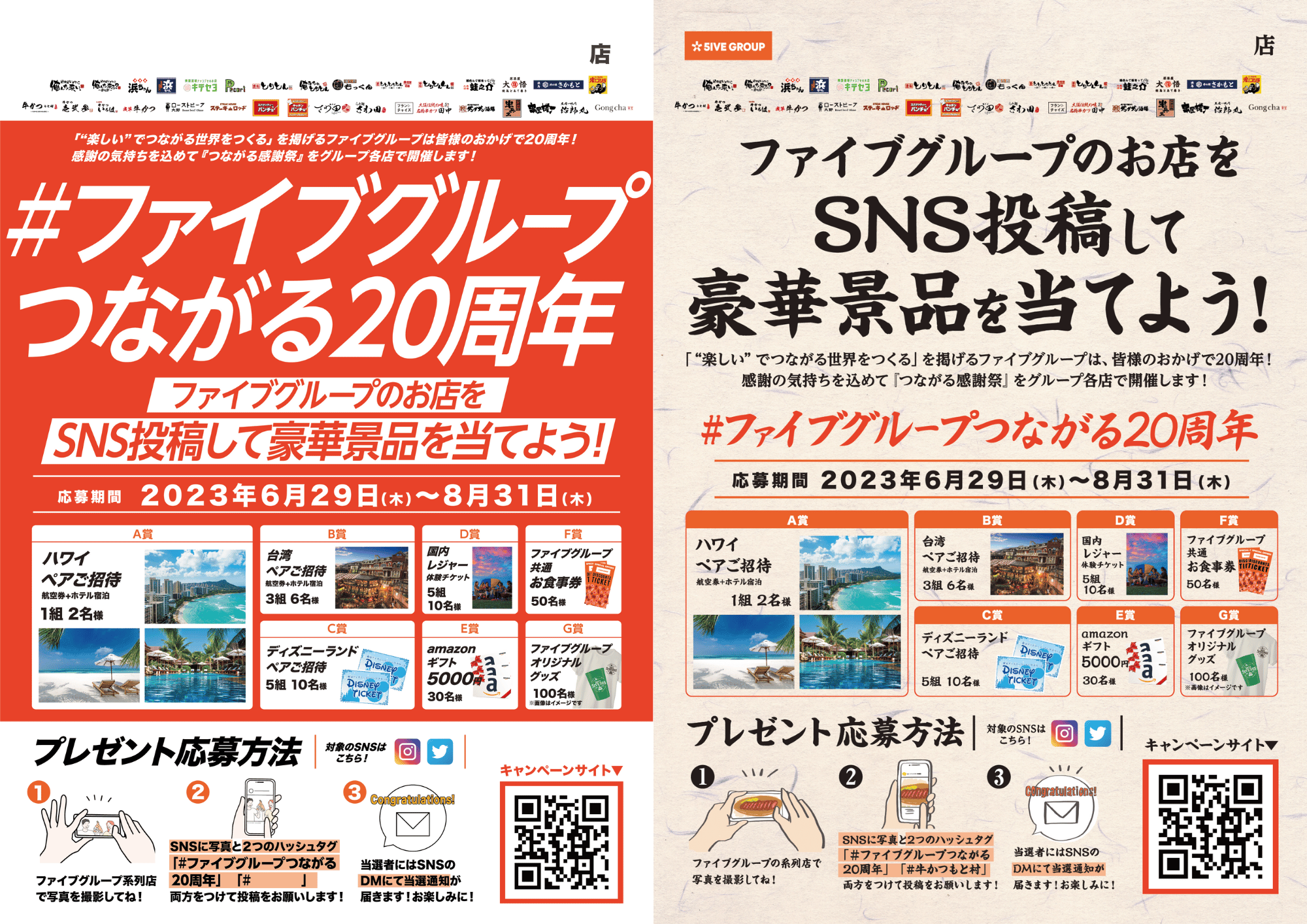 ファイブグループの店舗(直営店)にて撮影の写真を2つのハッシュタグ