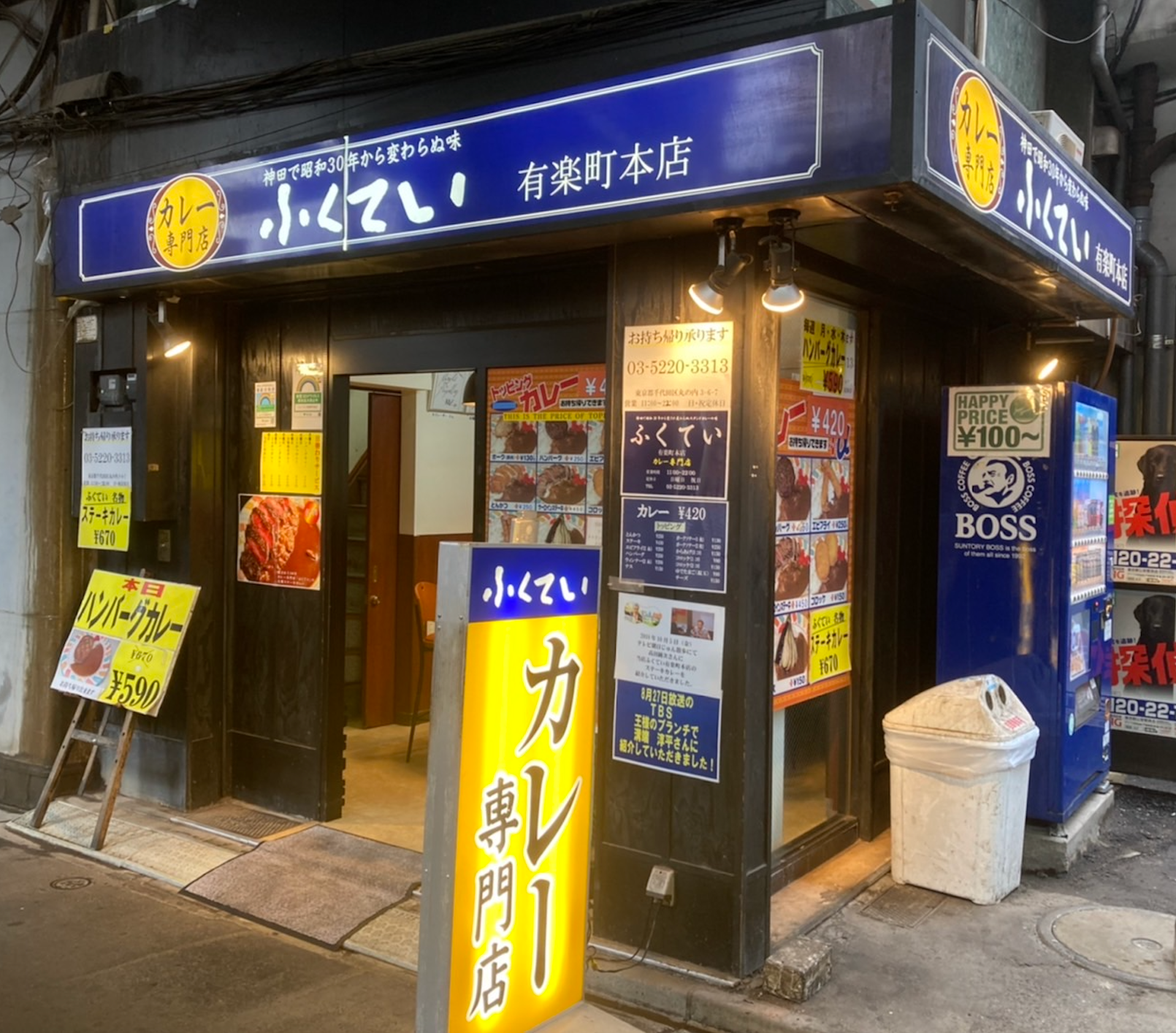 平成22年に神田駅の大規模修繕により、有楽町に移転しカレー専門店「ふくてい」として再出発しました。