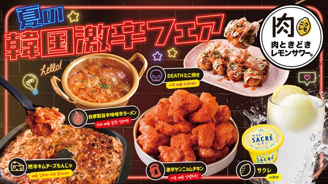 暑い夏にぴったりな刺激的な辛さ!激辛韓国グルメを食べ放題で楽しめる夏の祭典『肉レモ 夏の韓国激辛フェア』でHOTな夏を満喫しよう♪ヤンニョムチキンやインスタント麺など人気韓国メニューを真っ赤に染める激辛好きへの挑戦状!!