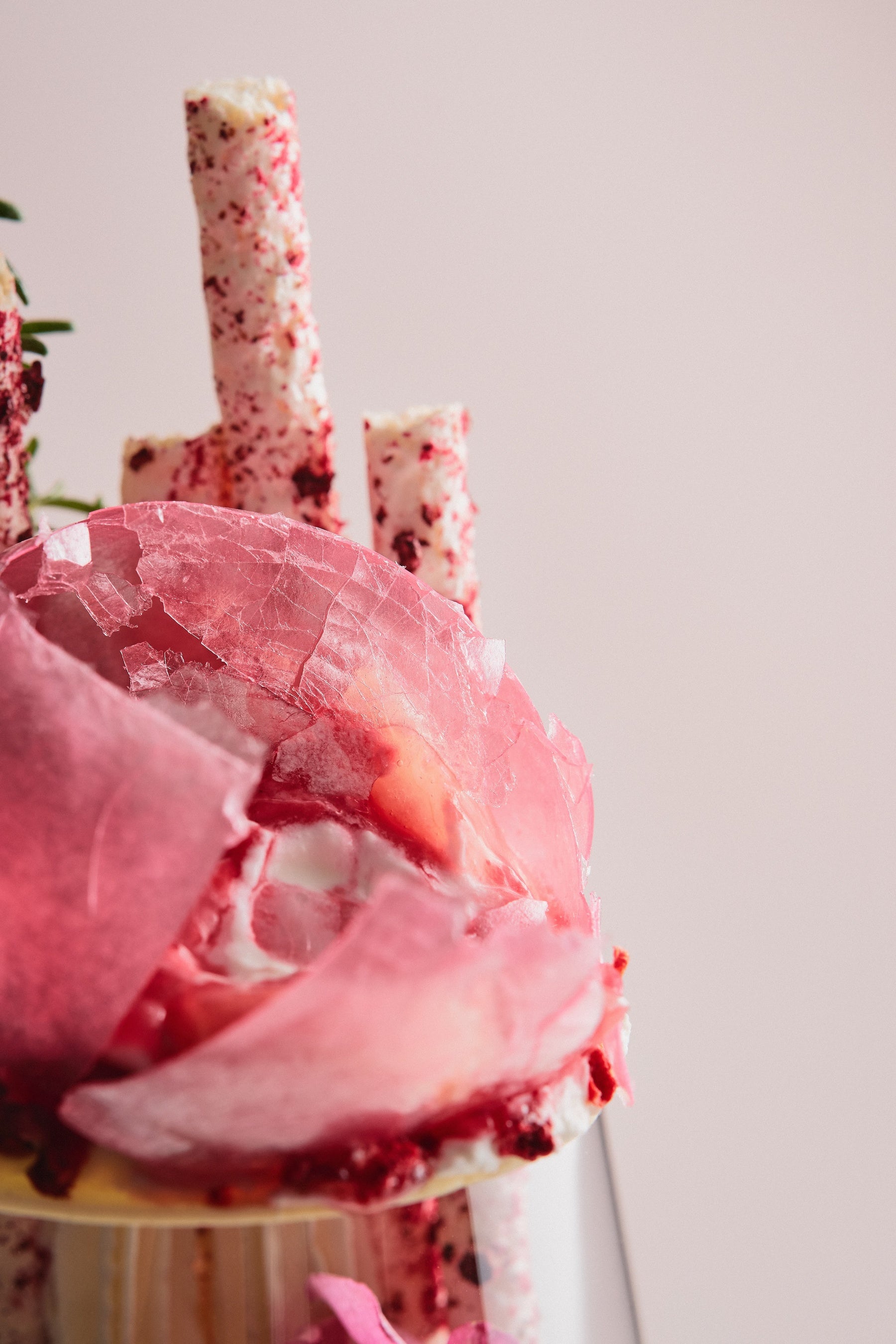 そこにメレンゲやシュトロイゼル、いちごのフィヤンティーヌを合わせます。