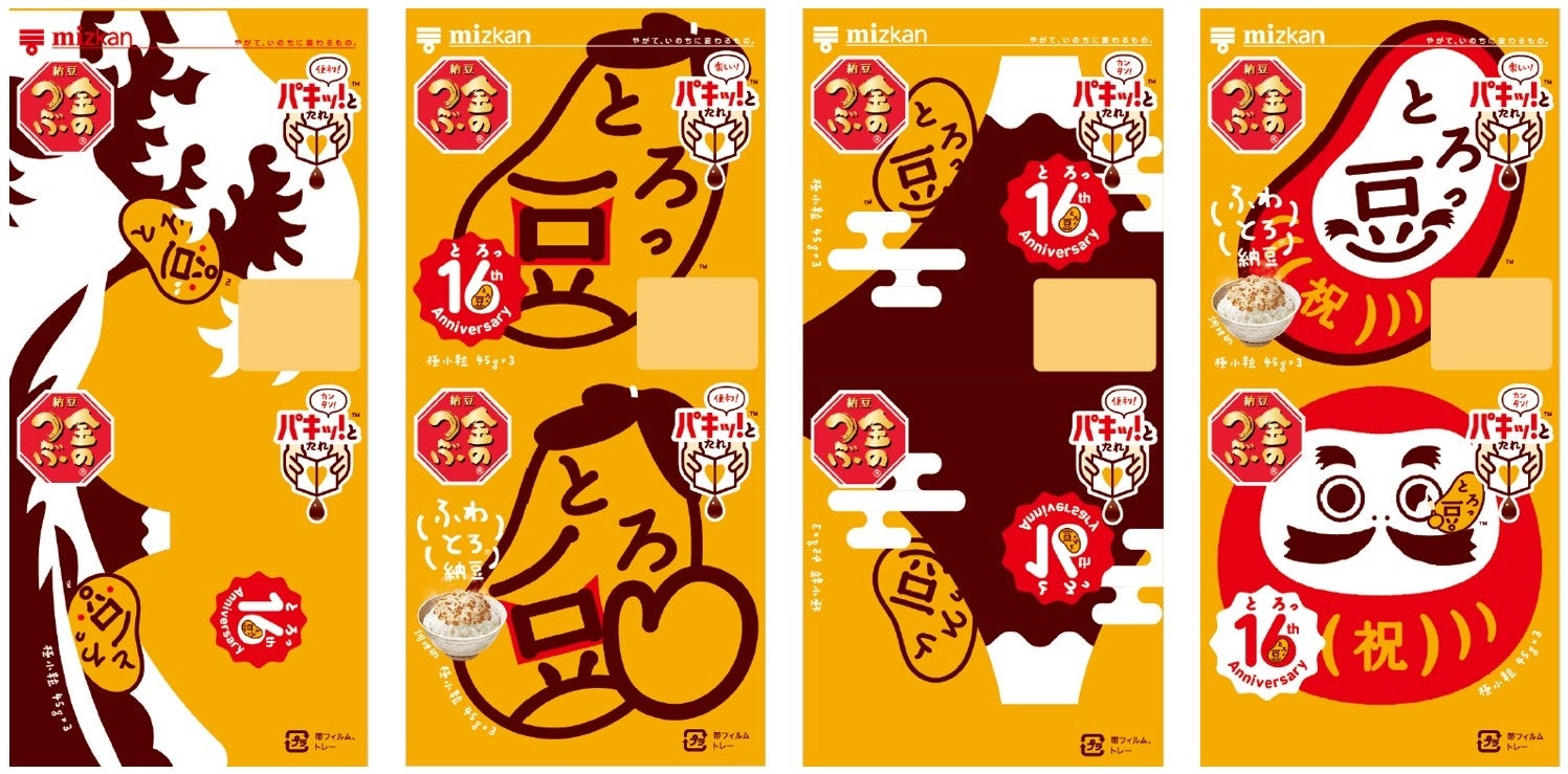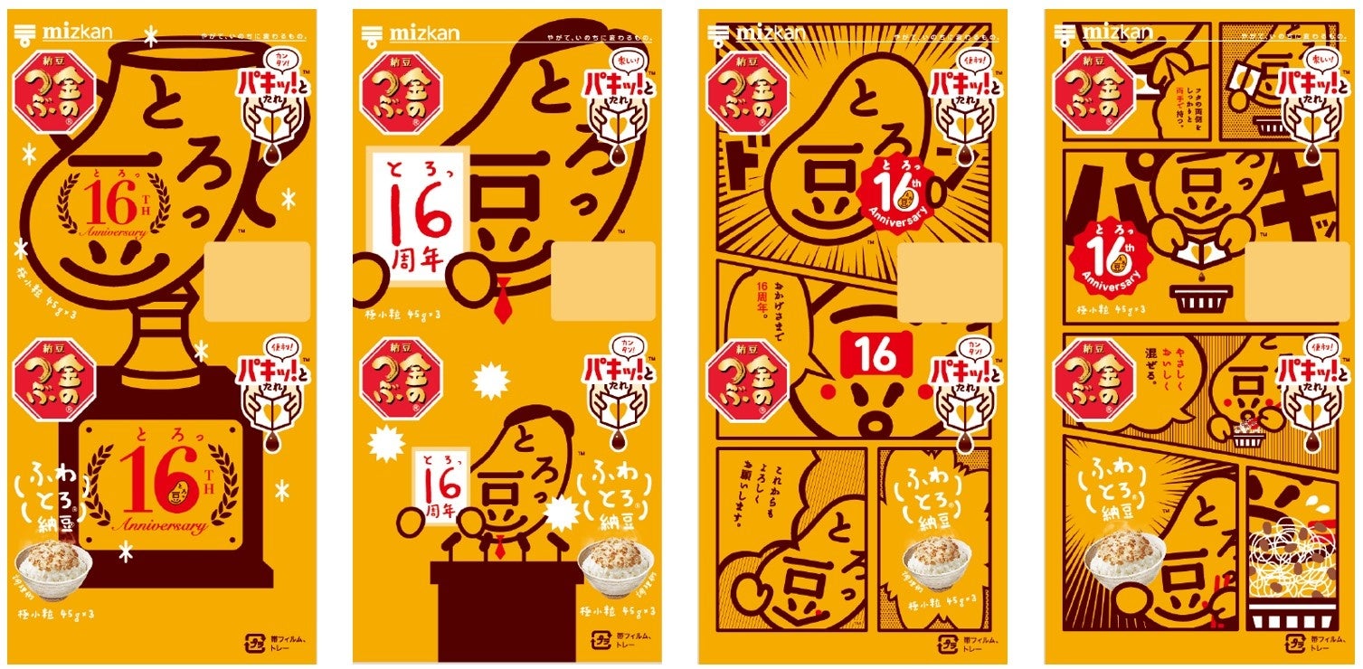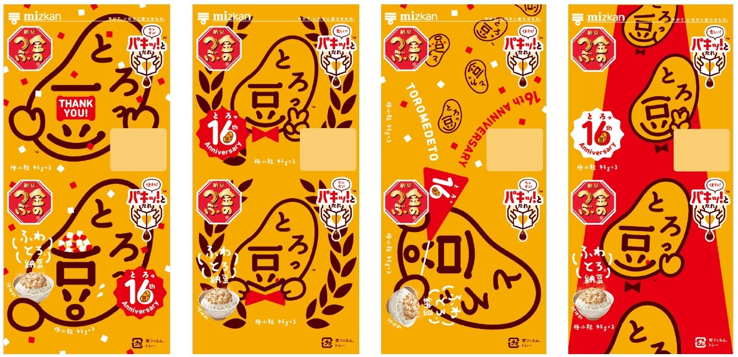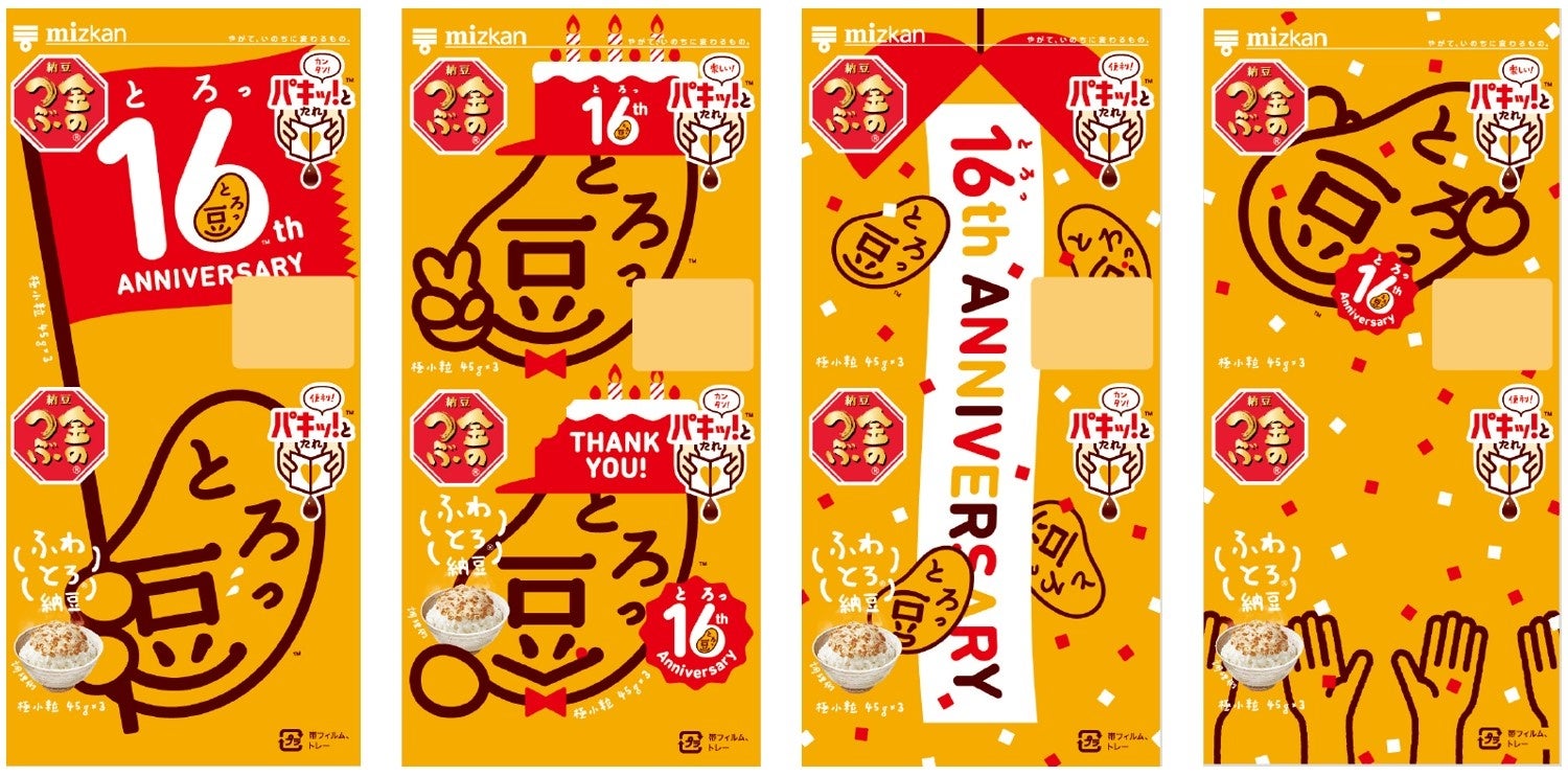 株式会社 Mizkan(本社:愛知県半田市、代表取締役社長兼 CEO:吉永 智征、以下ミツカン)は、23年6月30日出荷分より、「金のつぶ® パキッ!とたれ™ とろっ豆™」の16周年記念パッケージを、期間限定で発売いたします。