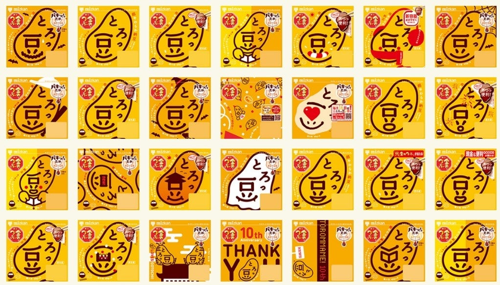 そんな「とろっ豆」ですが、気づけばパッケージの総数は300種類を突破しました。今回16(とろっ)周年で節目を迎えますが、これからも色々なアイデアで“ちょっとした楽しみ”を届けてまいります。