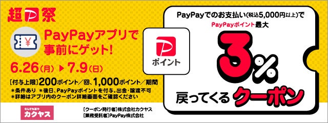 ■対象条件:事前にPayPayアプリでクーポンを取得し、期間中にカクヤスネットショッピングサイトにて税込5,000円以上を「PayPay」で決済された方。