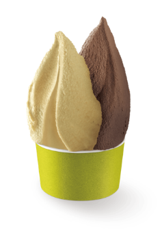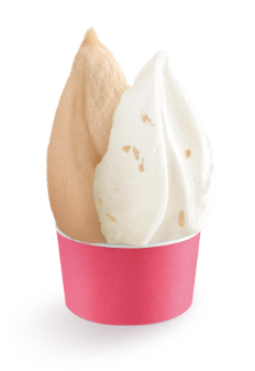 CREAMY GELATOは、2種類のフレーバーを半分ずつ充填した“ダブルカップ構造”を採用しています。2つのジェラートをそれぞれ食べたり、同時に食べたり、練って食べたり、何通りものおいしさを楽しんでいただける商品です。“ねり食べ”によって、味の変化をお楽しみいただけます。