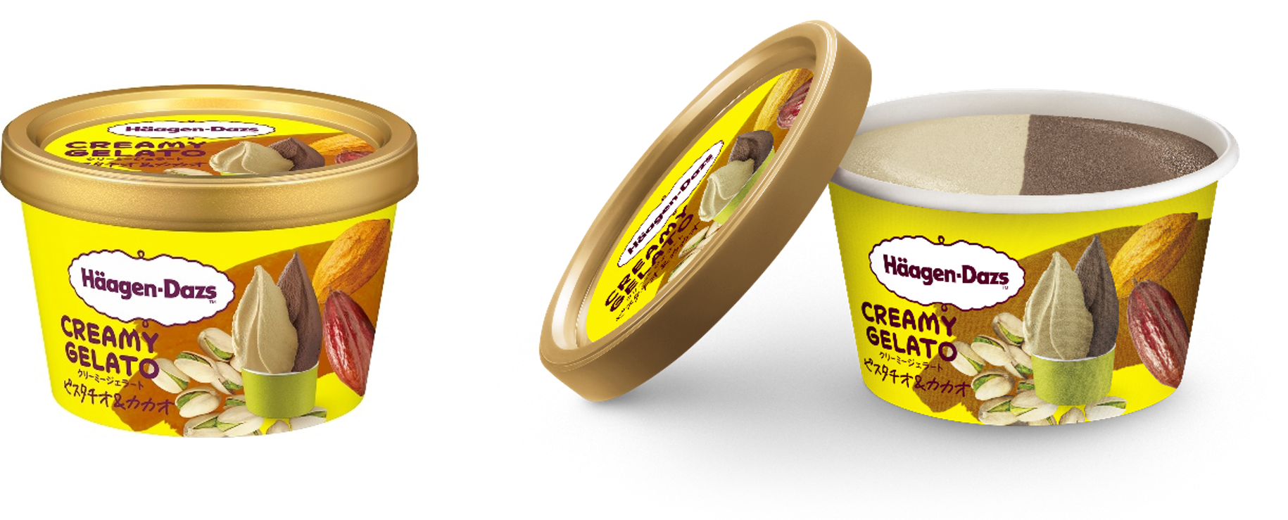 CREAMY GELATOは、2020年の夏に登場して以来、多くのお客様にご好評いただいている「夏に食べたいハーゲンダッツ」をコンセプトにしたジェラートシリーズで、こだわり素材の濃厚な味わいと、すっきりとした後味が特長です。2種類のフレーバーが半分ずつ入った“ダブルカップ構造”により、1カップで何通りものおいしさを楽しめます。