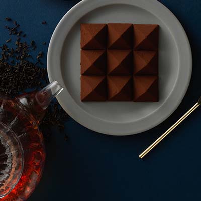 花開くようなダージリンの香りと、フレッシュなカカオの余韻が楽しめる LeTAOを代表するチョコレートです。口の中でなめらかに溶けていく温度を追求し、融点22.9度の口どけに辿り着きました。