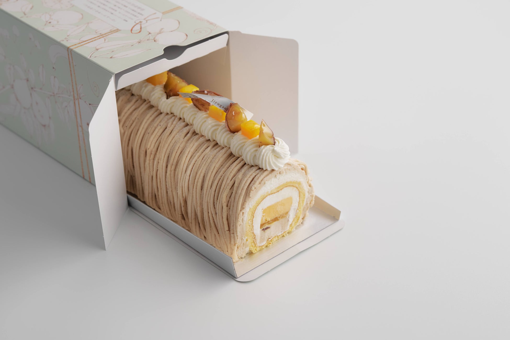 シフォン生地とバニラクリームでくるりと巻き、最後にモンブランクリームを贅沢に絞りました。