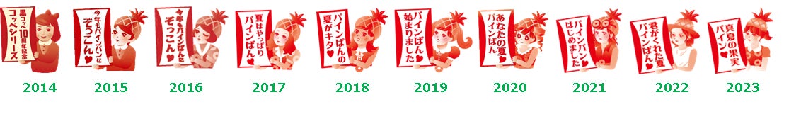 また、2014年からは『パインぱん』のキャラクターをパッケージに採用。毎年、メッセージを掲げた様々なテイストの女の子【パインぱんガール】をデザイン。実は、その年の開発担当者がモデルになることも!?パインぱんと併せて、こだわりのパッケージにもご注目ください。