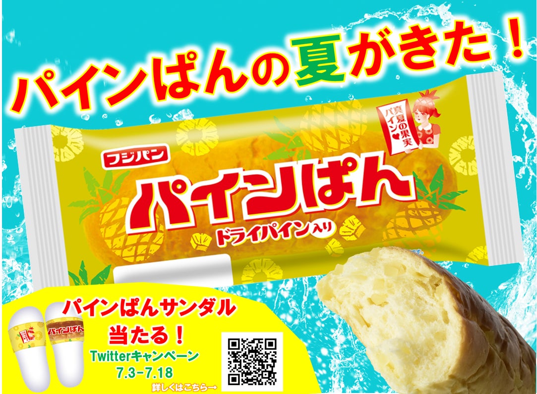フジパン公式Twitterをフォローし、キャンペーン投稿のリツイートまたは「#パインぱんと夏満喫大作戦。」とつけて投稿すると抽選で10名様に『オリジナルパインぱんサンダル』をプレゼントします。