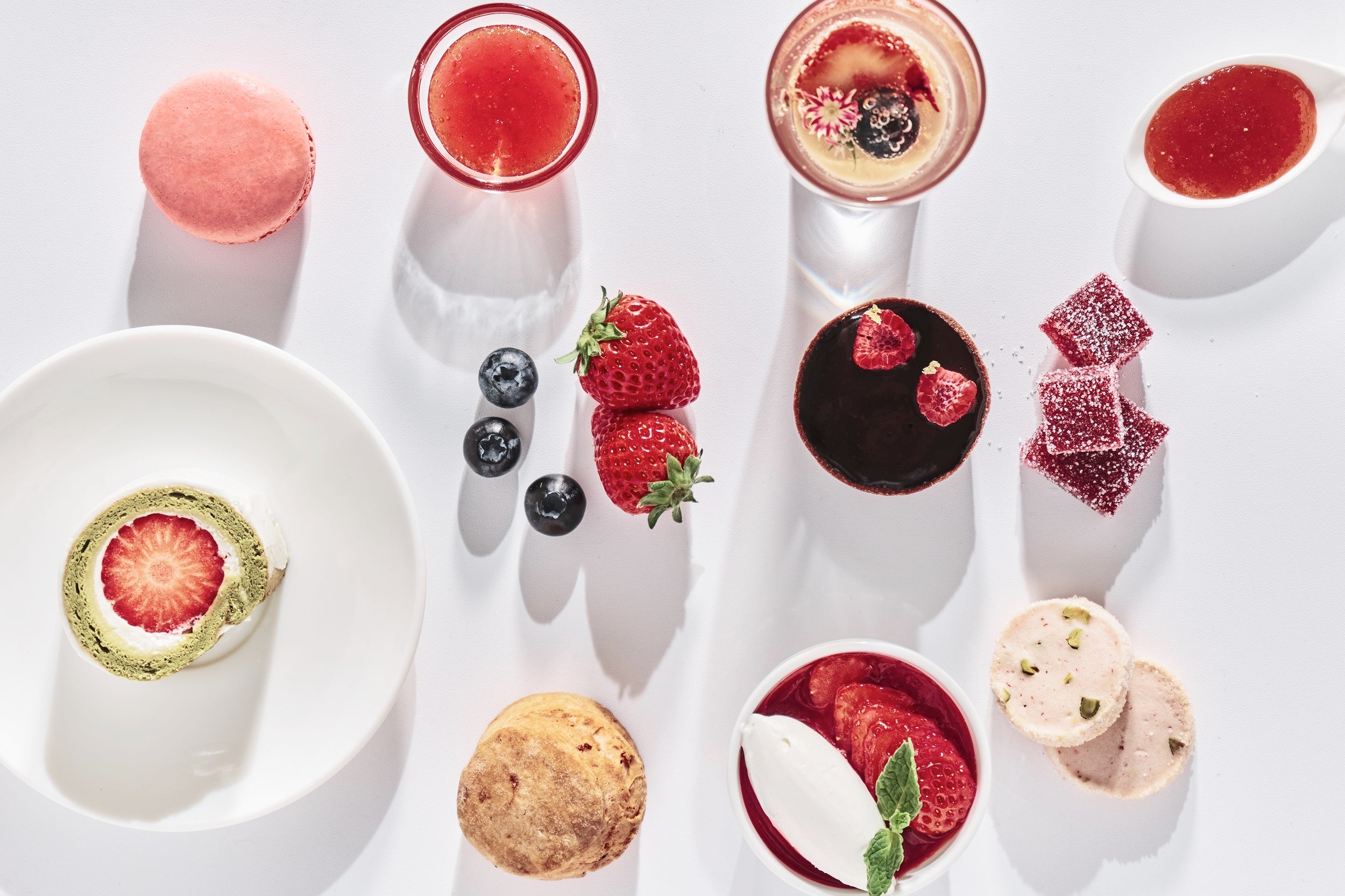 今回、日程限定で一般公開開放するシーズナブルイベントとして、”木苺”を使った種類豊富ないちごを贅沢に使用した【いちごのスイーツとお花】と「季節の”彩り“」がテーマのお花空間演出が楽しめるアフタヌーンティーをご用意いたしました。いちごのロールケーキやクリームブリュレ、マカロン、タルトなど甘酸っぱい7種類のスイーツをパティシエが腕を振るいます。
