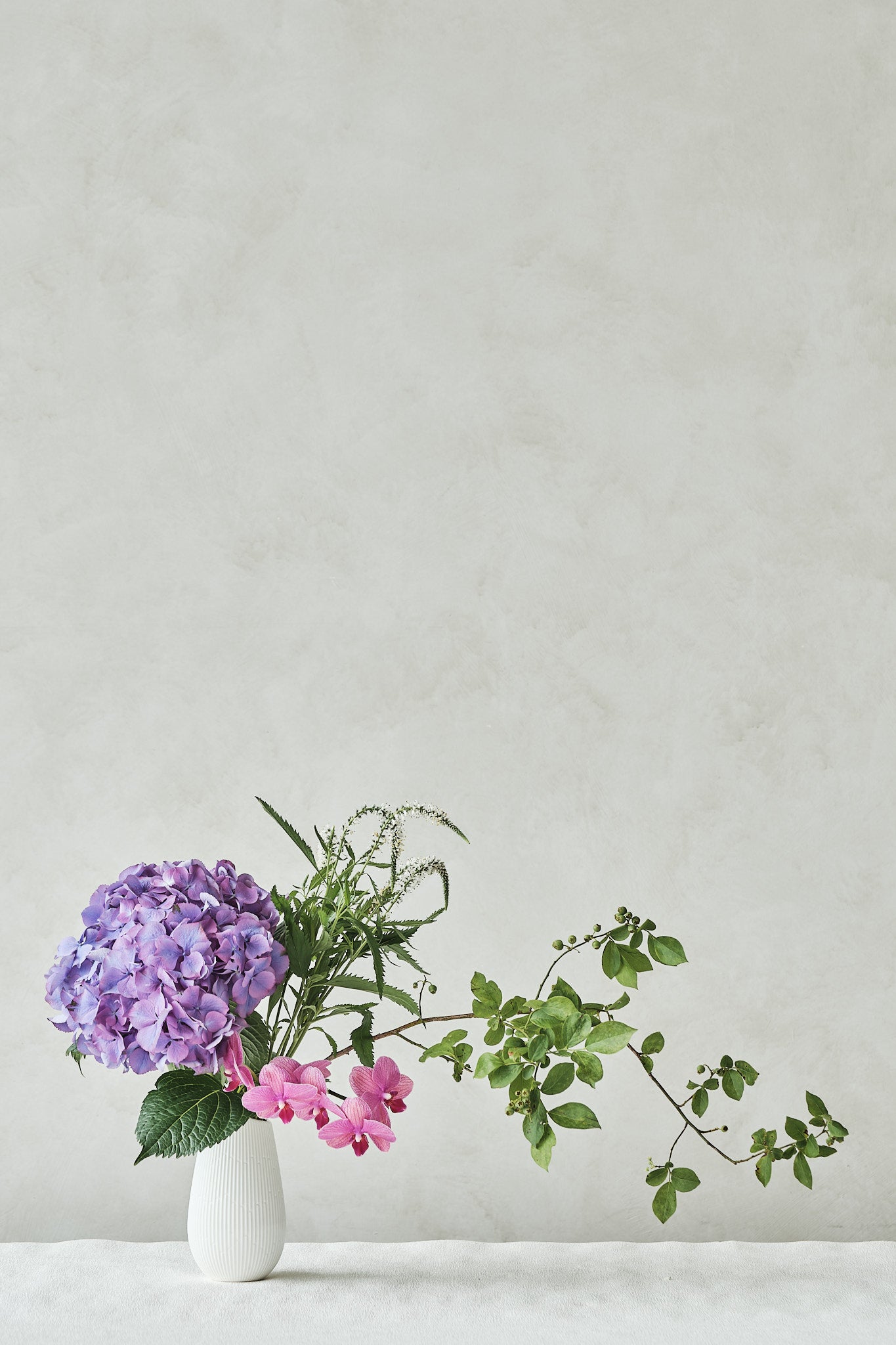 「SPIM Flower&Decoration」(スピン フラワー&デコレーション) フローリストが、”初夏から夏 秋へと移り行く情景”をストーリーに、季節のアジサイ、ブルーベリーなどを使い非日常演出をいたします。
