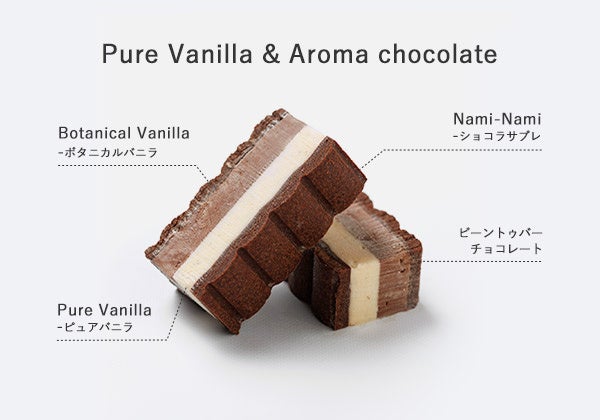 アロマショコラ:卵も乳製品も使わない、ビーントゥバーチョコレートの香りを最大限に生かした味わい。フルーティーなカカオの香り。