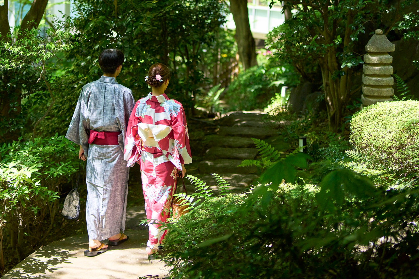 約250種類からお選びいただける浴衣とレストランでのお食事がセットになった「浴衣プラン」のお食事会場としても「和のあかり×ビアテラス」をお選びいただけます。浴衣でのお食事で、涼やかなひとときをお過ごしください。