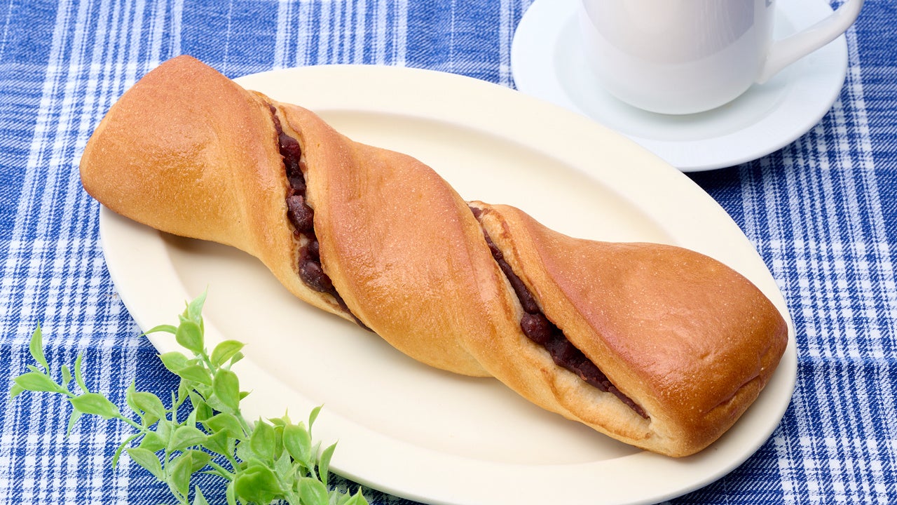 こしあんと、かのこ豆をソフトな生地にはさんでツイストしたパンです。食感のよいかのこ豆がアクセントになっています。素朴で懐かしい味わいです。