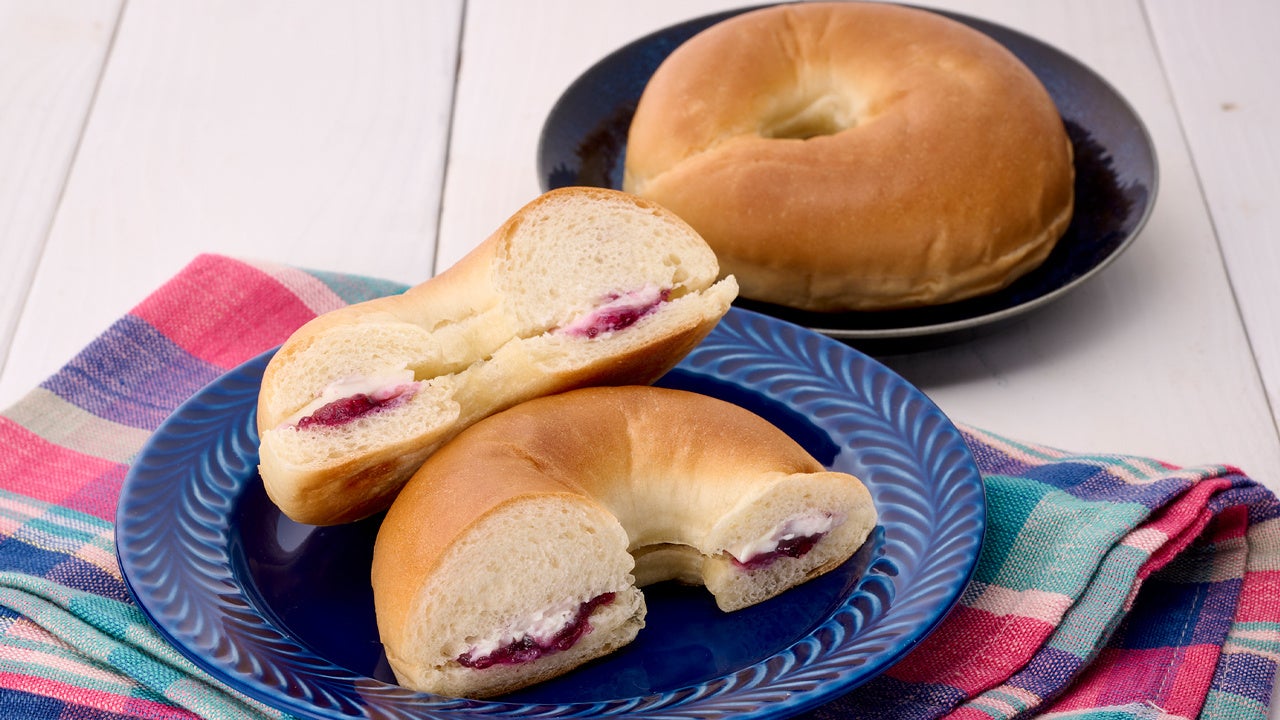 もっちり食感のベーグルにブルーベリーとレアチーズクリームをサンドしました。ベリーとチーズの酸味がきいていて夏場でもスッキリ美味しく召し上がれます。