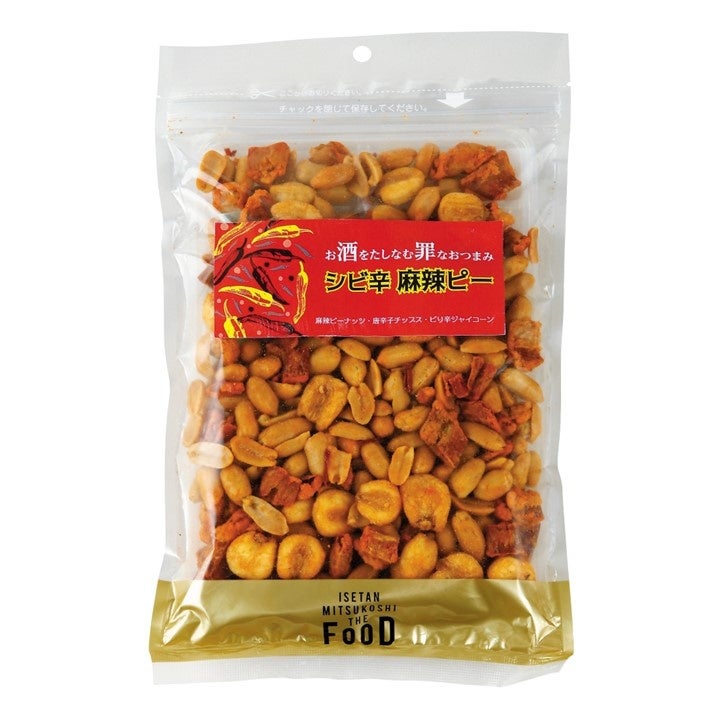 「シビ辛麻辣ピー」は麻辣ピーナッツ、唐辛子チップス、ピリ辛ジャイアントコーンの3種類を合わせた、お酒と相性ぴったりの罪なおつまみです。唐辛子だけでなく麻辣も加えることで痺れる辛さもプラスし、辛いだけでは満足できない人も楽しんでいただける《シビ辛》な味わいに仕上げました。