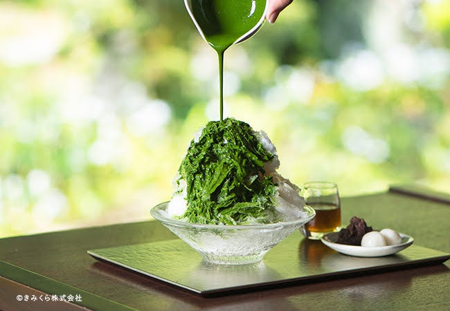 毎年、日本茶きみくらの茶寮にて季節限定で提供するかき氷「絹氷(きぬごおり)」。