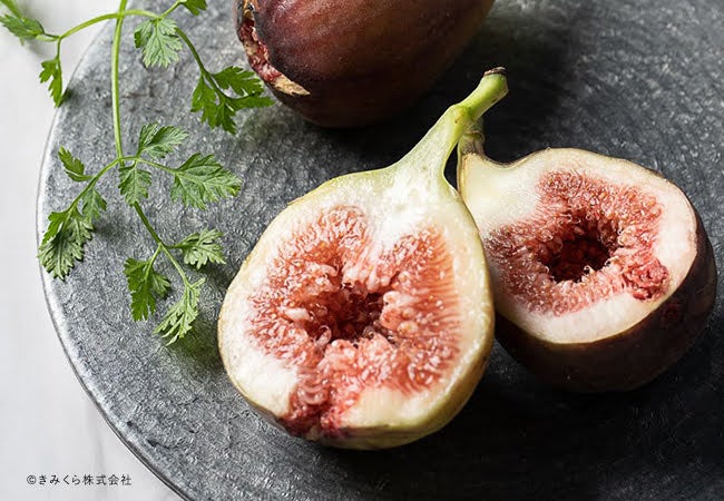 大粒の県内産無花果1.5粒を贅沢に使用。ふんわりと盛った絹氷に無花果とミルキーなコクとさっぱりとした味わいのミルクアイスをのせ、甜茶茎を浅焙煎で仕上げた「くきほうじ」の自家製蜜と、無花果の蜜をかけました。