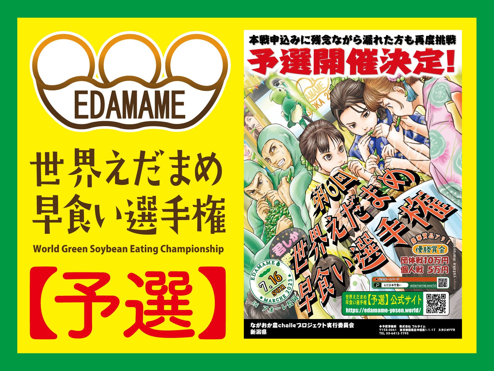 ※予選にエントリーして予選を通過した場合には、2023年7月16日(日)に開催の「世界えだまめ早食い選手権」本戦(新潟県長岡市で開催)へ出場となります。