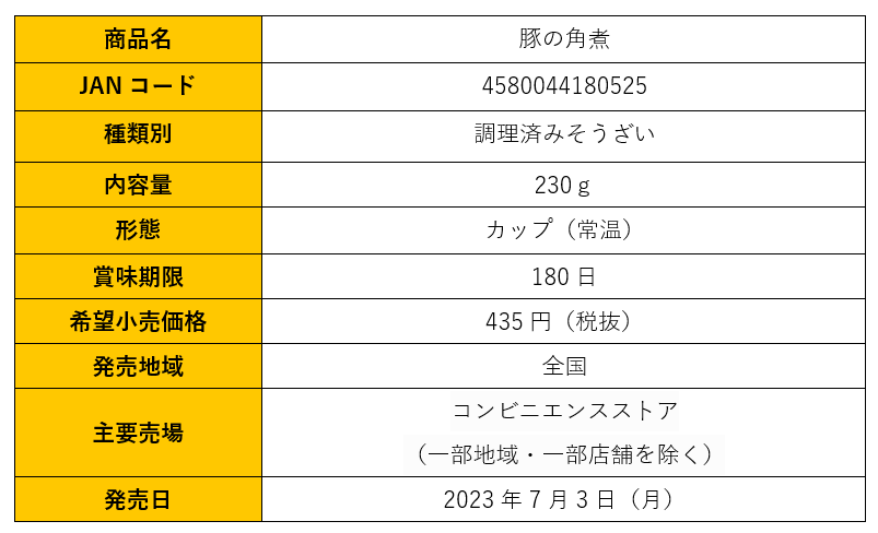 株式会社トーヨーコーポレーション(本社:東京都渋谷区、代表取締役社長:熊谷聡)は、電子レンジで温めて手軽に楽しめるカップ食品『豚の角煮』を、2023年7月3日(月)より全国のコンビニエンスストアで発売いたします。