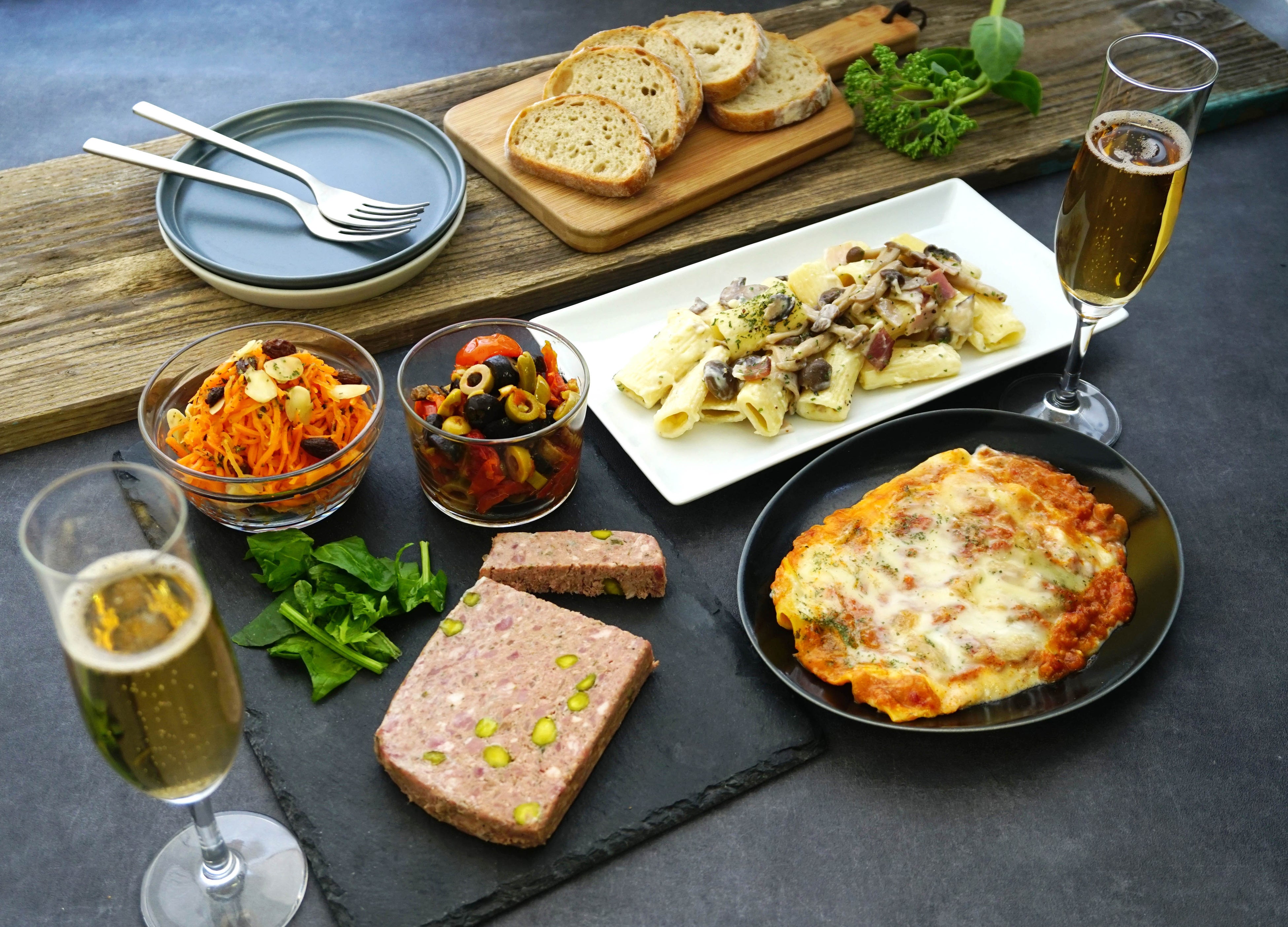 夏にぴったりの爽やかな前菜からボリュームのあるメインまで、2~3人で食卓を囲んだ夕食をイメージし、バランスよく商品を詰め合わせました。白トリュフオイルの芳醇な香りが楽しめるリガトーニやパルミジャーノ・レジャーノを使用した旨味たっぷりのラザニアなど、こだわり食材を使用したメニューもラインナップ。