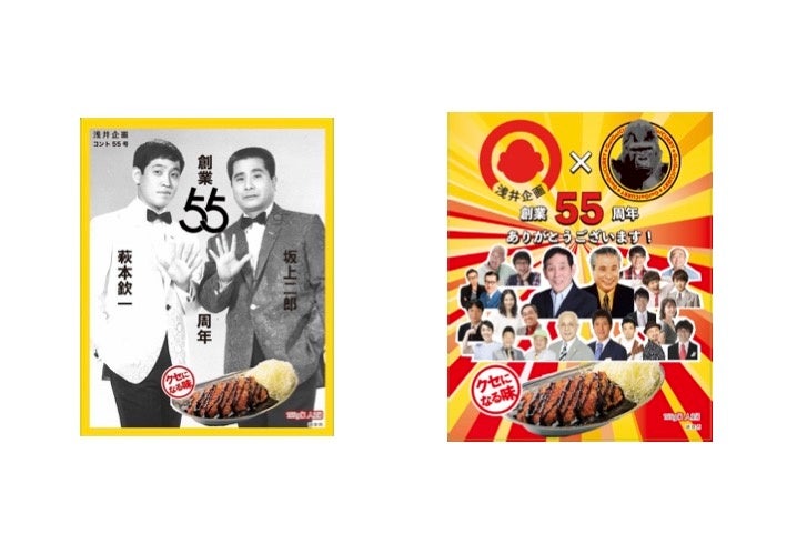 また第二弾は、ゴーゴーカレーと浅井企画ならではのコラボとして、デビュー当初のコント55号が手のひらで「55」のポーズをしている貴重な写真を使った特別パッケージのレトルトカレーを制作します。なお、一般販売の予定はありません。