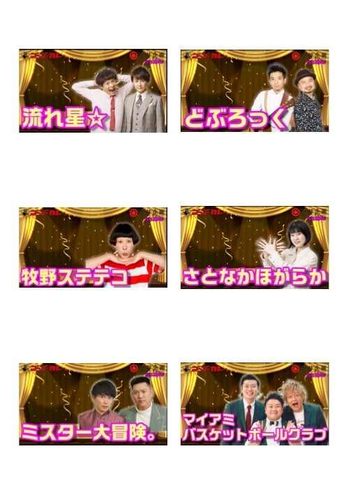 流れ星☆、どぶろっく、牧野ステテコ、さとなかほがらか、ミスター大冒険。、マイアミバスケットボールクラブ