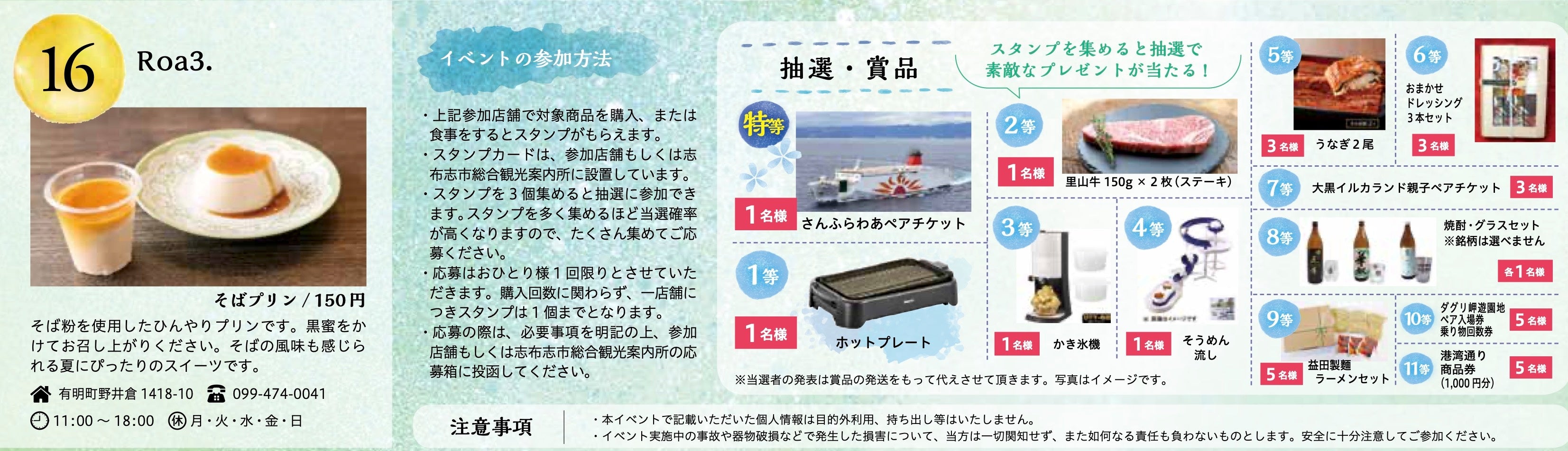 【Roa3】 ☎︎099-474-0041 [住所] 鹿児島県志布志市有明町野井倉1418-10 [営業時間] 11:00~18:00 [定休日] 月・火・水・金・日