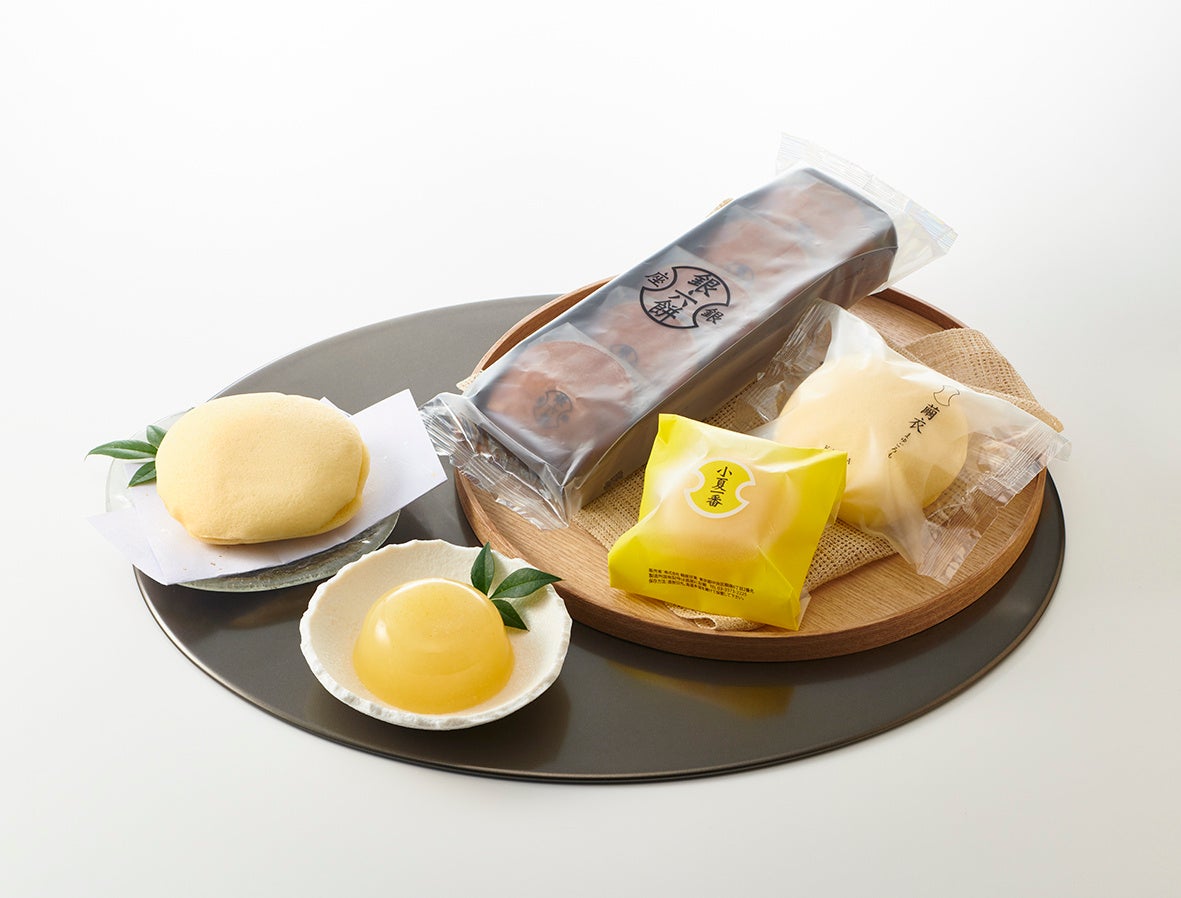 『銀座甘楽』の定番商品「銀六餅」「繭衣」、夏季一番人気の「小夏一番」が入ったお得なお楽しみ袋です。