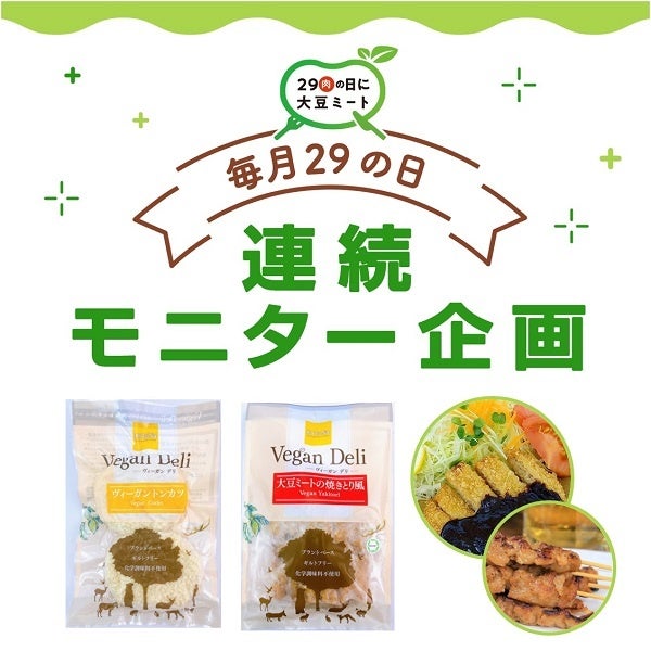 ヴィーガンデリ「大豆ミートの焼きとり風」&「ヴィーガントンカツ」を50名様に提供