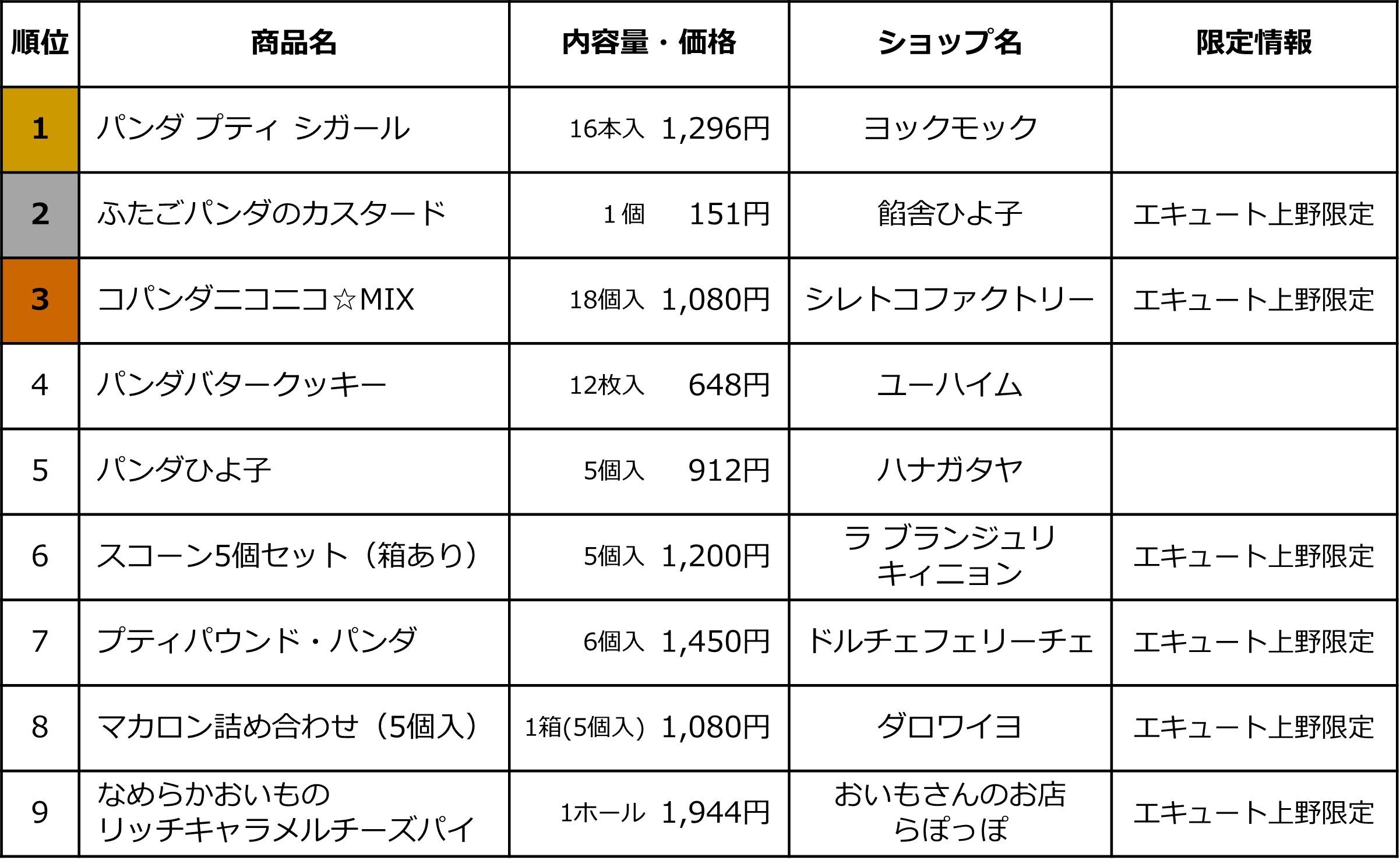 上野駅「エキュート上野」かわいい♡パンダスイーツ・ベーカリー売上TOP9