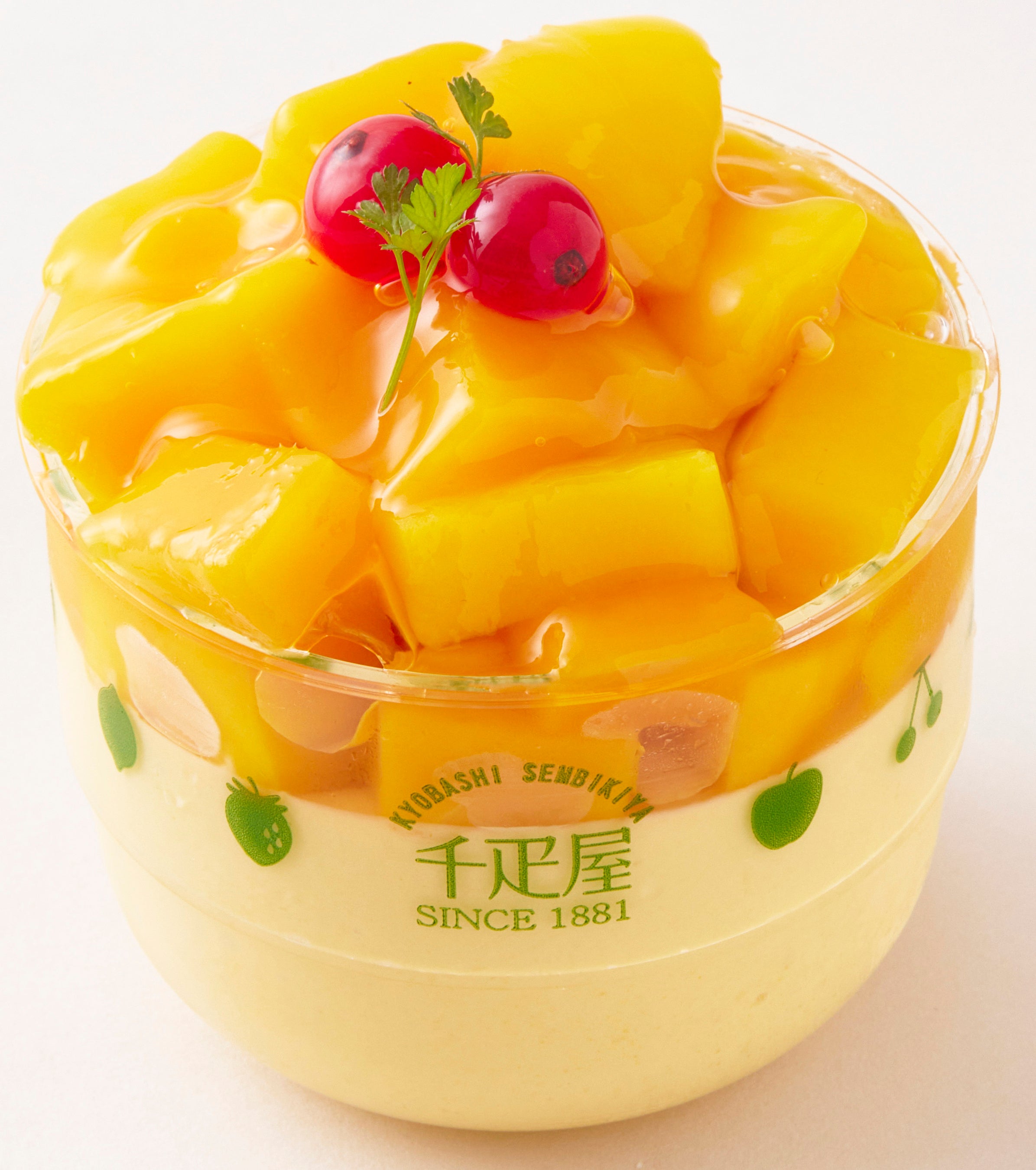 マンゴーピューレを使用した濃厚で口当たりのよいプリンに、マンゴーの果肉をたっぷりトッピングした、 マンゴー尽くしの夏季限定商品です。