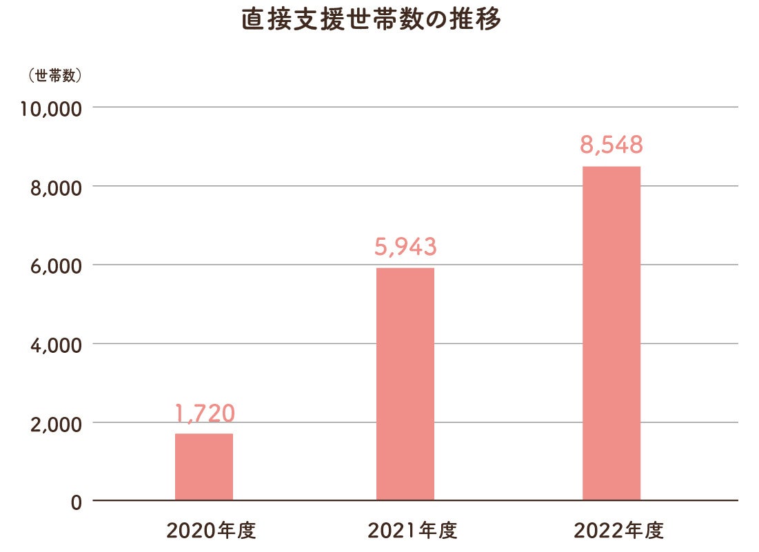 2022年度、おてらおやつクラブ事務局には新型コロナウイルスの感染拡大が起きるたびに、支援団体を介さない、直接的な支援(以下、直接支援)の要請が多く寄せられました。