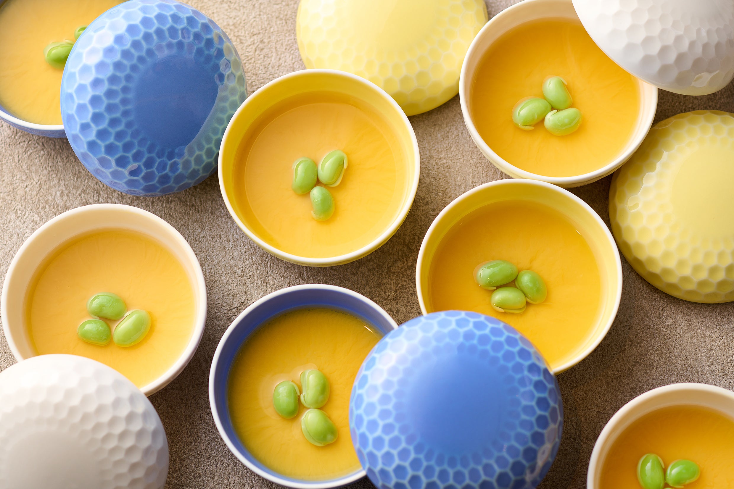 かつお出汁が香る口当たりなめらかなたまごに、とろりとした白だしベースの餡がかかった冷製の茶碗蒸しです。