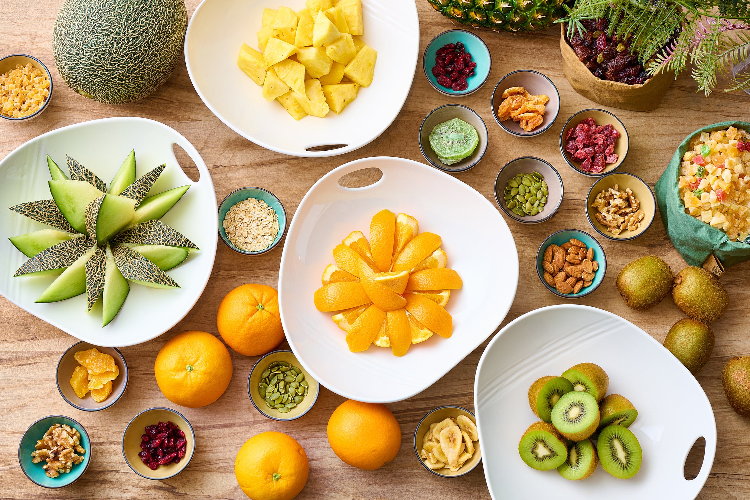 朝食には欠かせない季節のフレッシュフルーツ5種類に加え、ドライフルーツ6種もご用意しています。