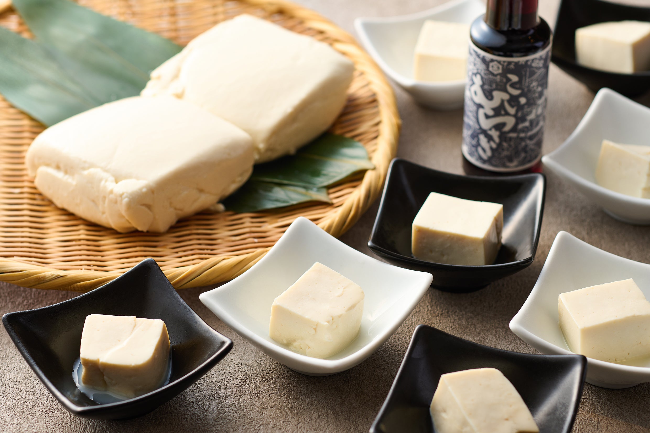 厳選した全国各地の国産大豆を使用した、京の地豆腐「久在屋」の濃厚な手作り寄せ豆腐。お好みで、京都・丹後で醤油を100年以上作り続ける老舗醸造「小野甚」の濃口醤油や京丹後の太郎塩でお楽しみください。