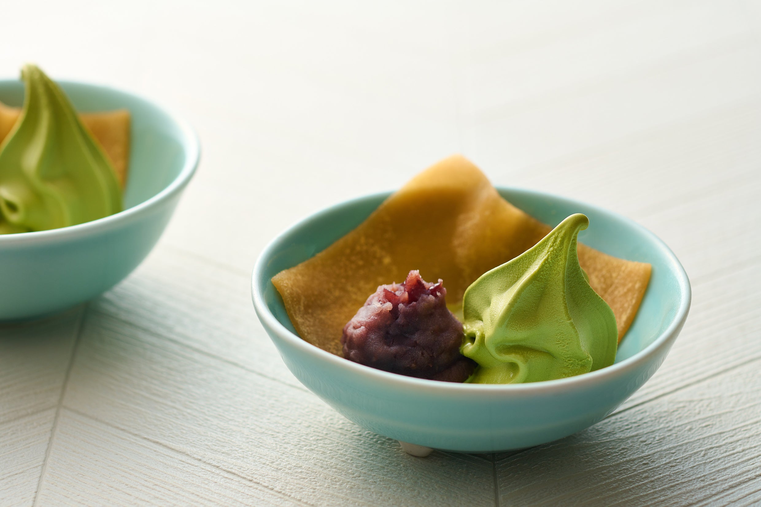 創業文化二年、井筒八ッ橋本舗の「なま八ッ橋」を色々なトッピングでお楽しみください。京都府産丹波大納言の小豆を使用したあんことあわせて、お好みで丹波黒豆きな粉や黒蜜、ソフトクリームなどアレンジも自在です。