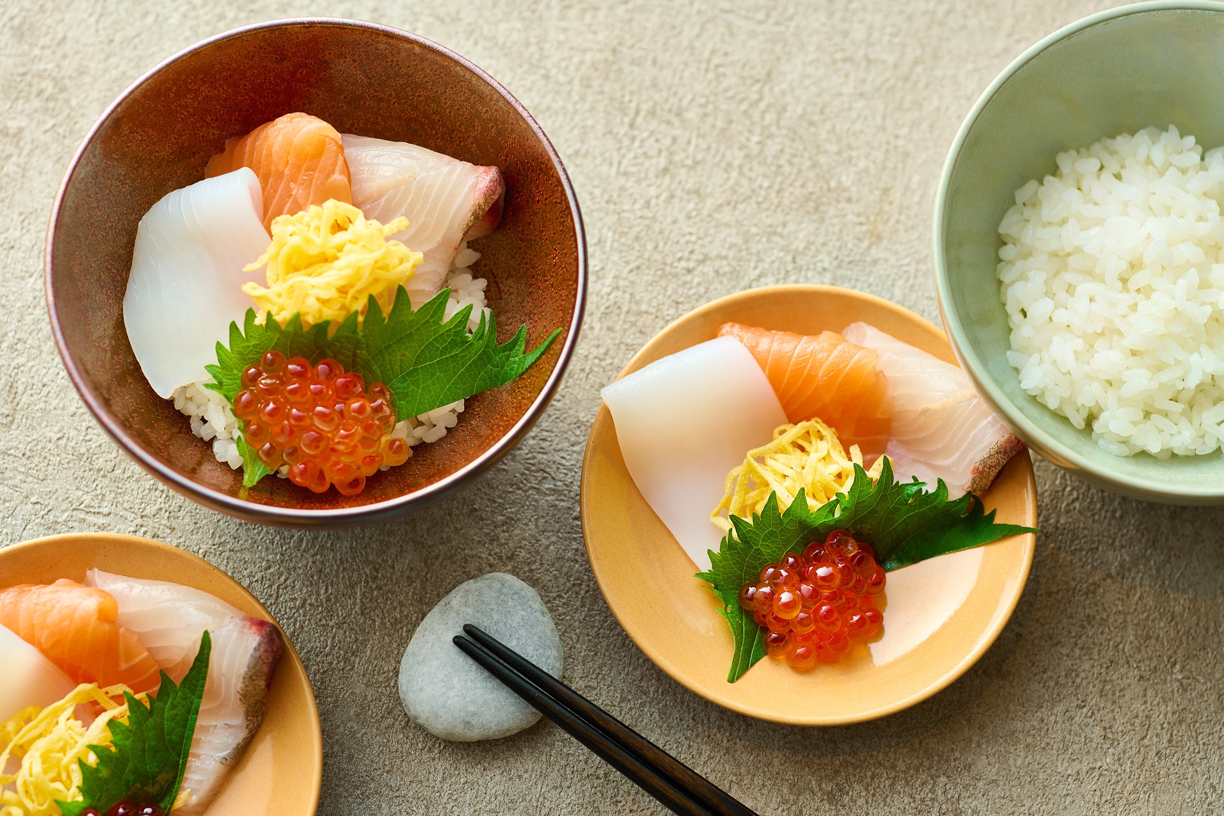 季節に合わせて4種の海鮮をご用意しています。ゆずの香りがさわやかに香るオリジナルの甘辛タレを絡めて、温かい白ご飯にのせてお楽しみください。