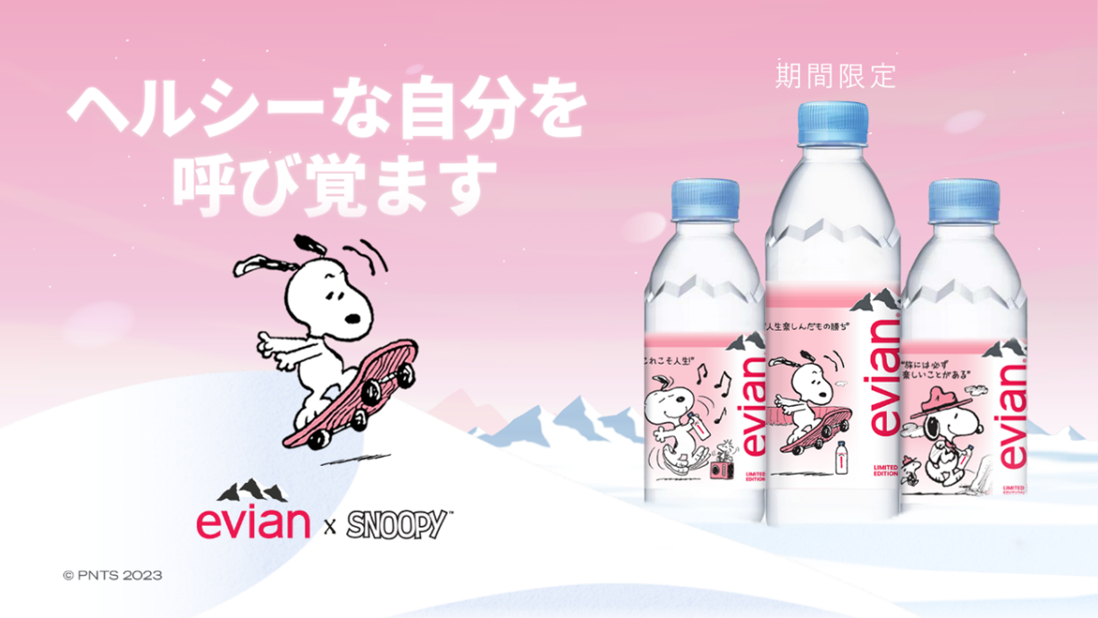 エビアン®は、フレンチアルプスで15年の歳月をかけてつくられ、天然のカルシウムとマグネシウムに恵まれた※1独自の味わいを持つナチュラルミネラルウォーターです。心温まるスヌーピーの名言が描かれたエビアン® オリジナルスヌーピーデザインボトルが暑い夏の水分補給と健康維持をサポートします。