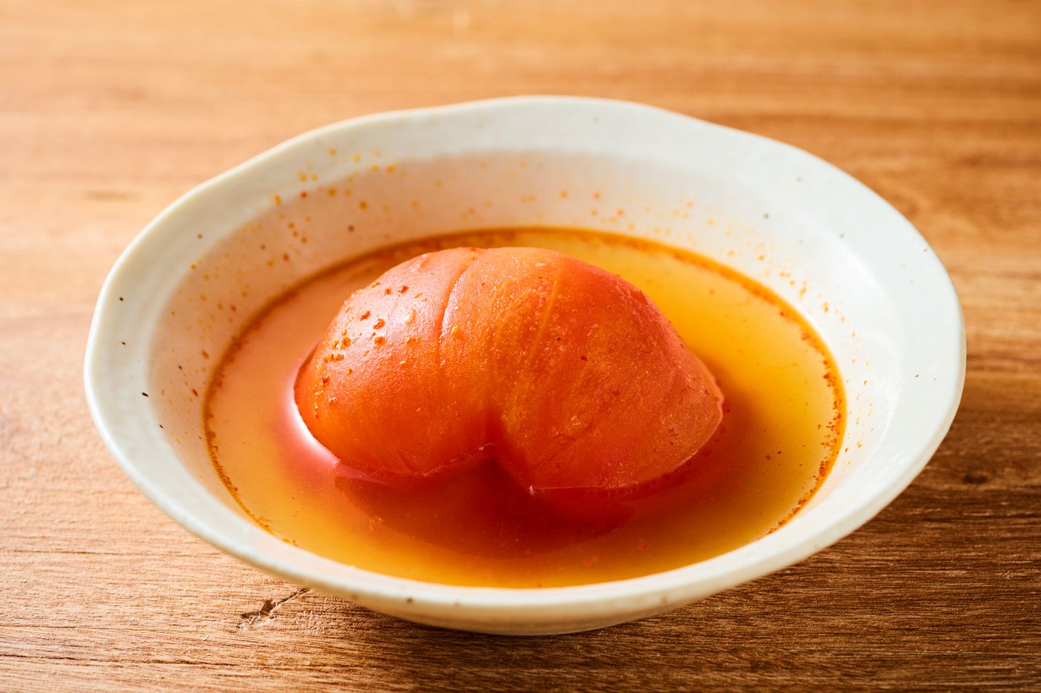 トマトの酸味と甘みが辛味出汁によく馴染み、夏に嬉しいおでんです。