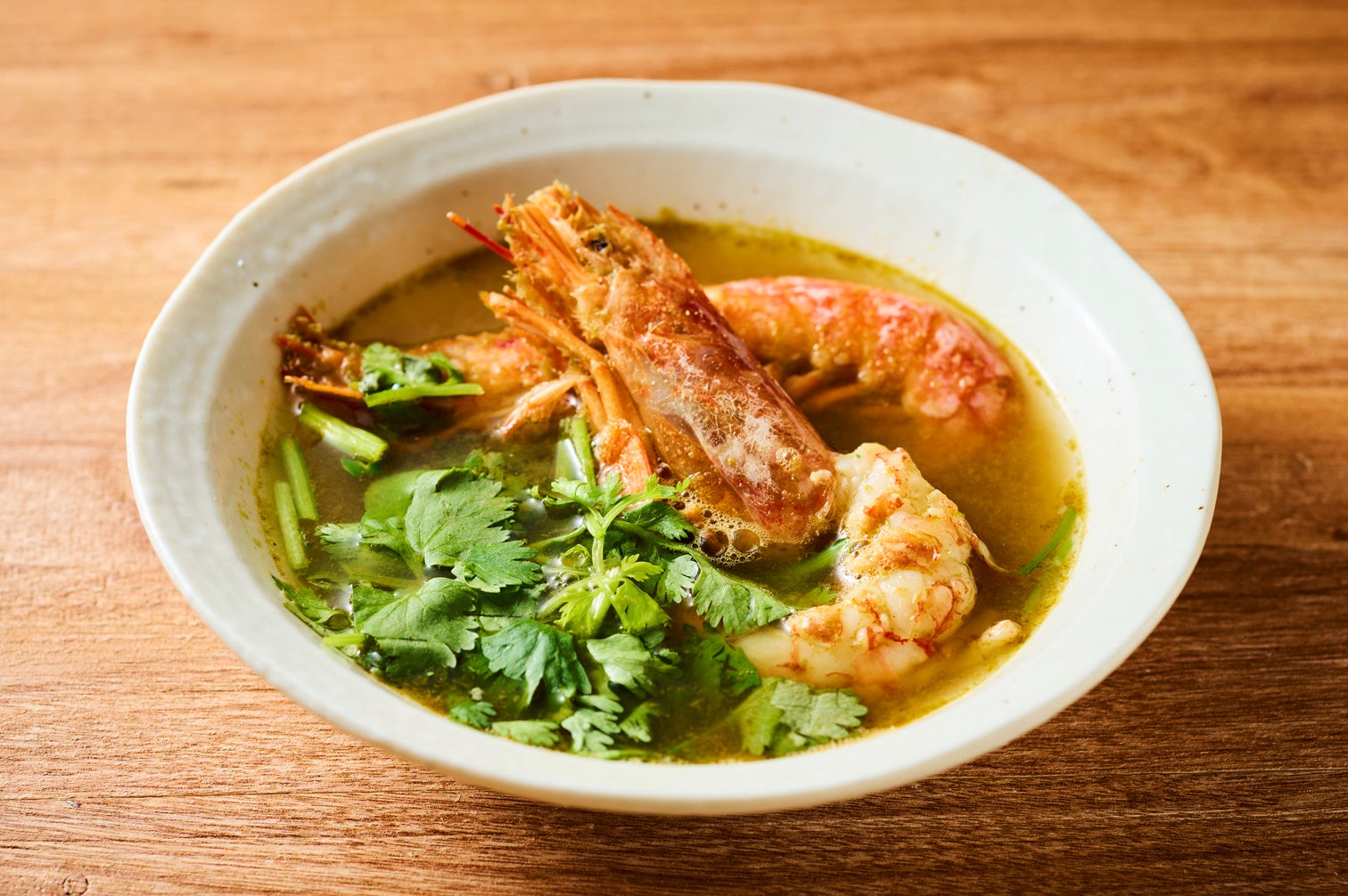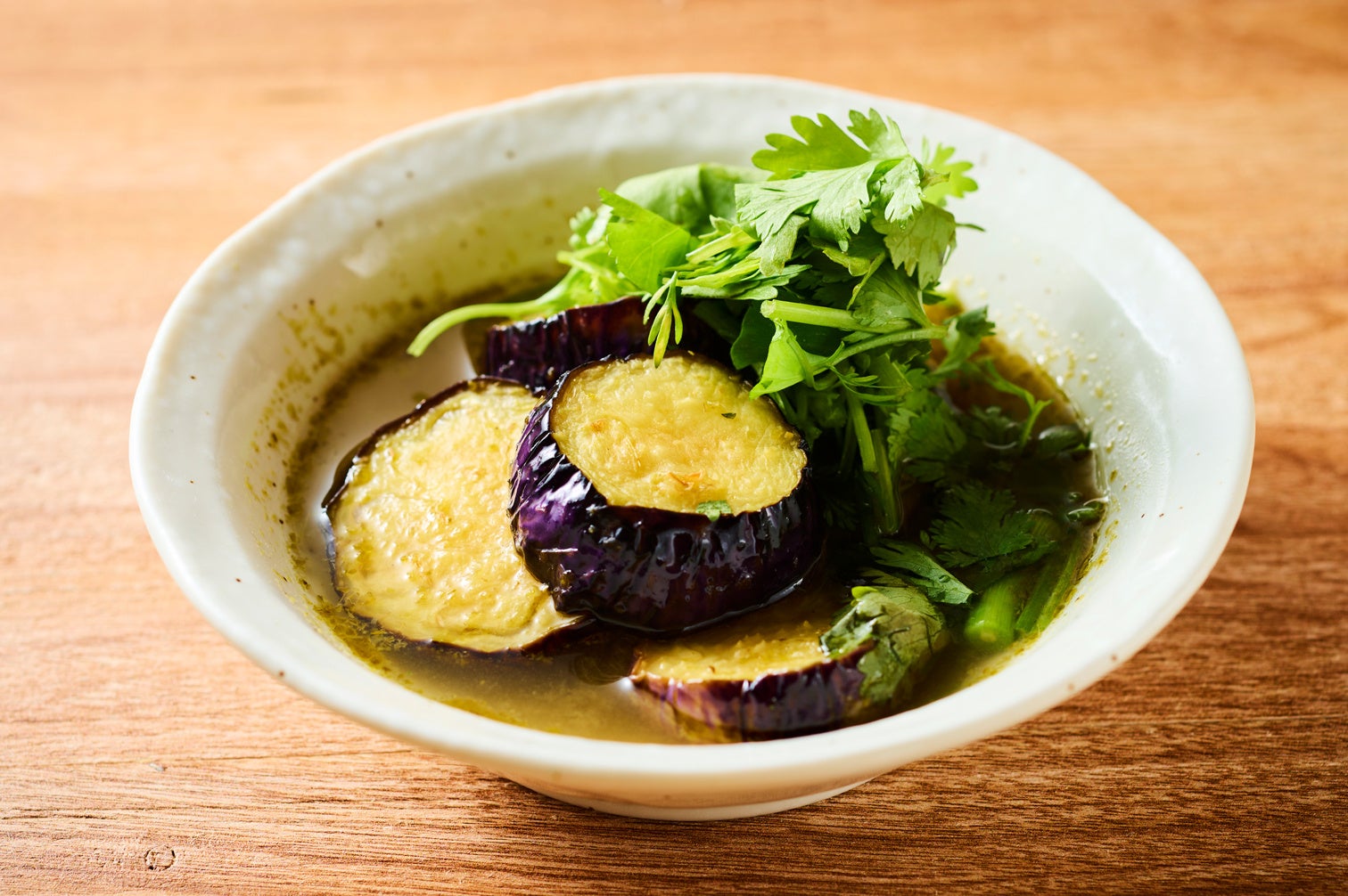 タイカレーのスパイシーさと茄子のクリーミーさに加え、鱧出汁の上品な風味が茄子を一層美味しく演出します。