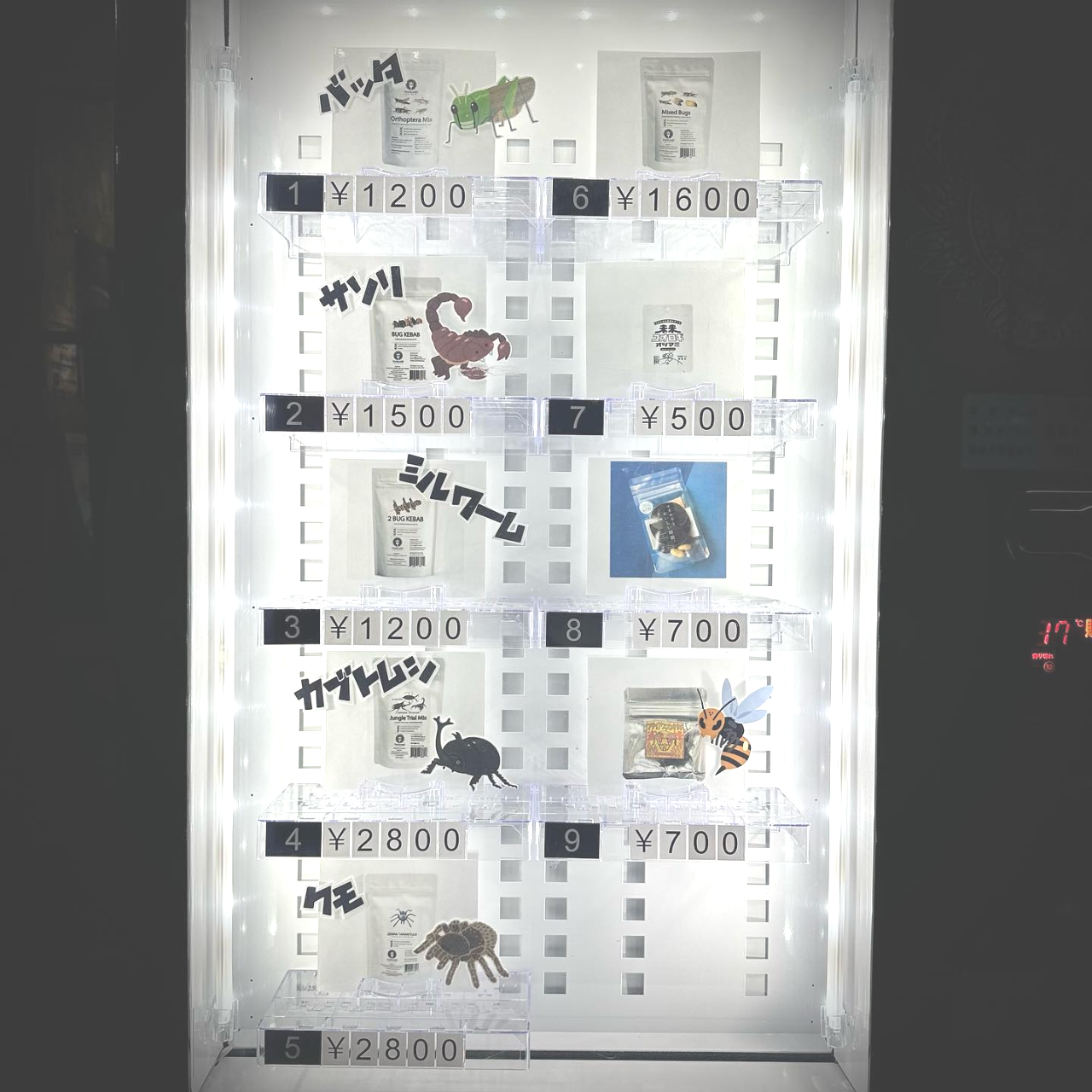 自店舗周辺では昆虫食自販機を見たことがなかったため、話題性を期待して自動販売機JPにお問い合わせいただき、屋外対応の冷蔵自動販売機を導入しました。