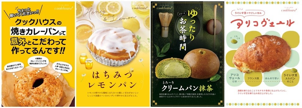 今年創業77周年の株式会社ダイヤ(本社:大阪市生野区新今里 代表取締役社長:多田俊介 以下 ダイヤ)が運営する「クックハウス」は、7月1日(土)に「焼きカレーパン」「はちみつレモンパン」「アリコヴェール」「とろ~りクリームパン(抹茶)」
