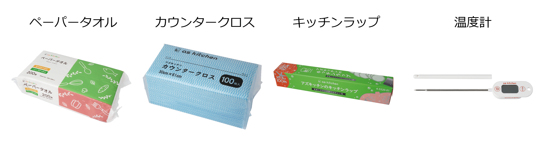 調理器具から衛生検査品、店舗備品、食器、日用品など、食を扱う現場で必要な商品を集めました。