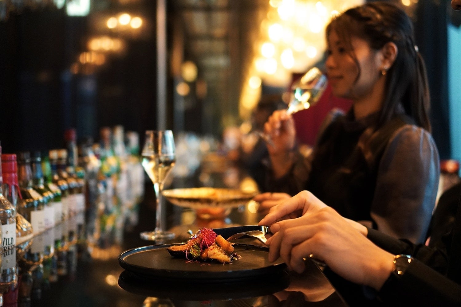 煌びやかなBARを囲むカウンターとハイテーブルの限定席のみでお楽しみいただけます。