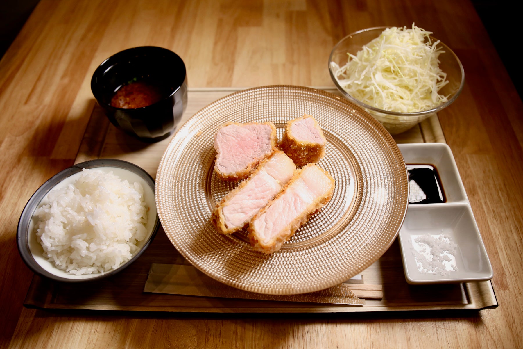 とんかつを上げる油やパン粉にもこだわっていて、最高の一品を極限まで追求されています。ごはんとキャベツは最高級のものでありながらおかわりができ、味噌汁もついていて満足感は計り知れないです。