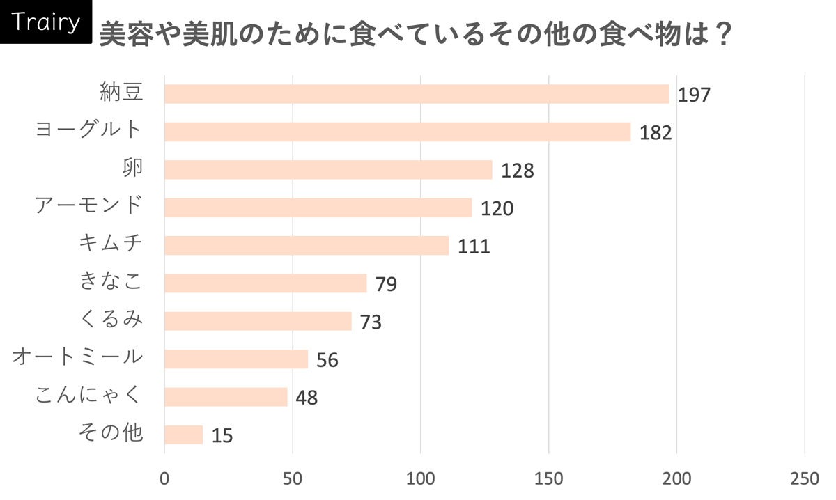 美容や美肌のためにどんな食材や飲み物を意識的に摂取しているのか、美容のために食事に気をつけている女性303名にアンケート調査を行いました。