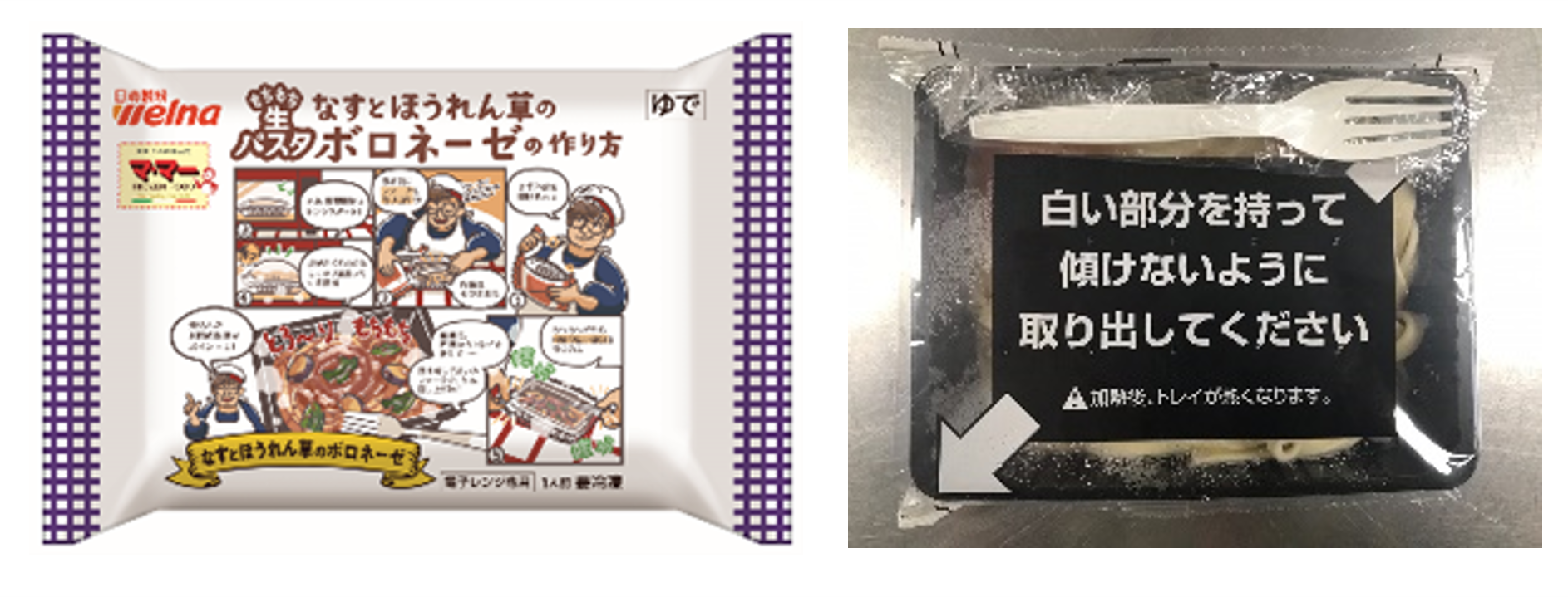 今回、株式会社日清製粉ウェルナが新たに開発した「冷凍自販機向けパスタ」は、専用トレイとフォークが付き、電子レンジが併設されていればその場で食する(即食)ことができる商品です。