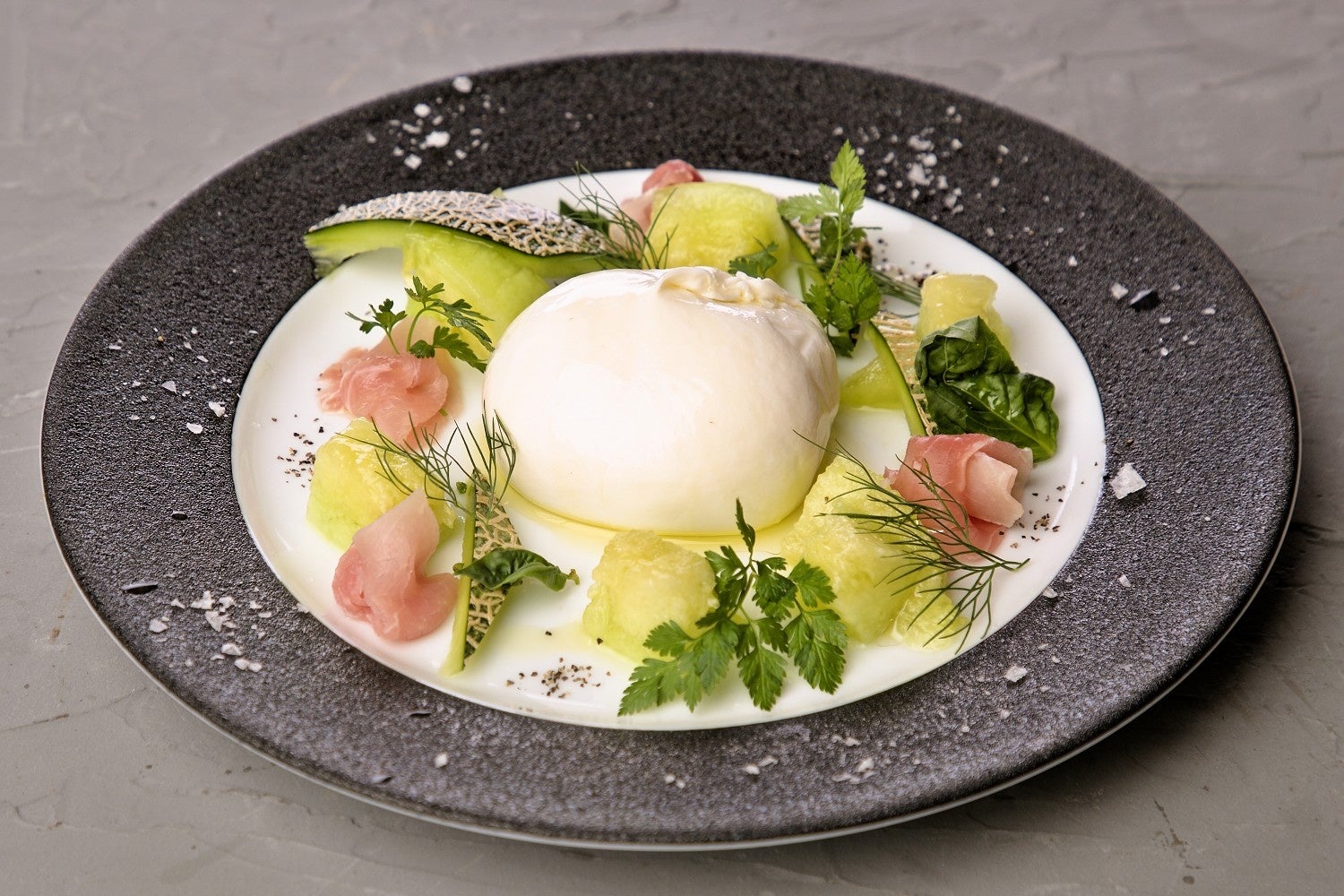 夏季限定のメロンのブッラータカプレーゼ。 相性抜群なメロン × チーズ × 生ハムの組み合わせ